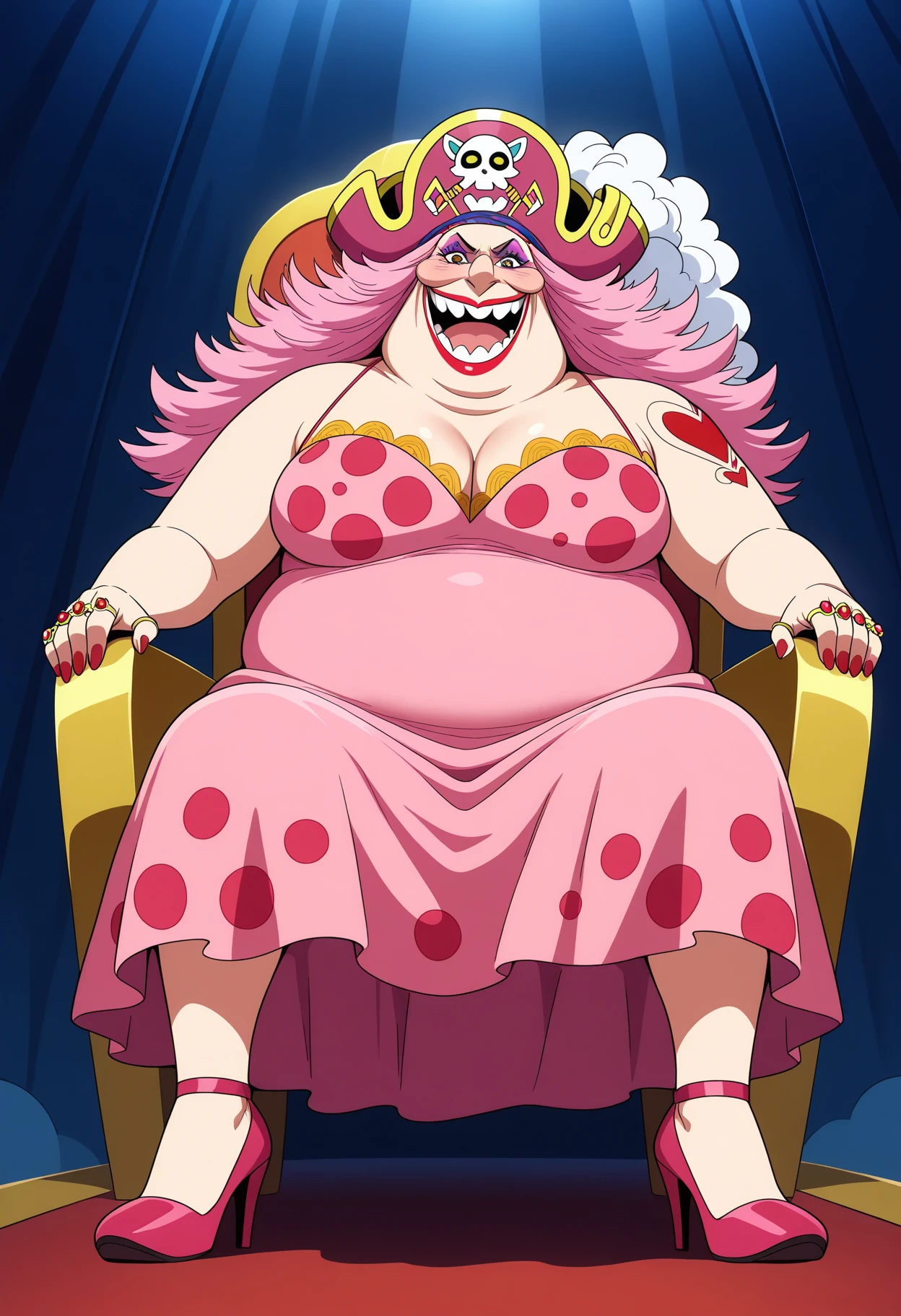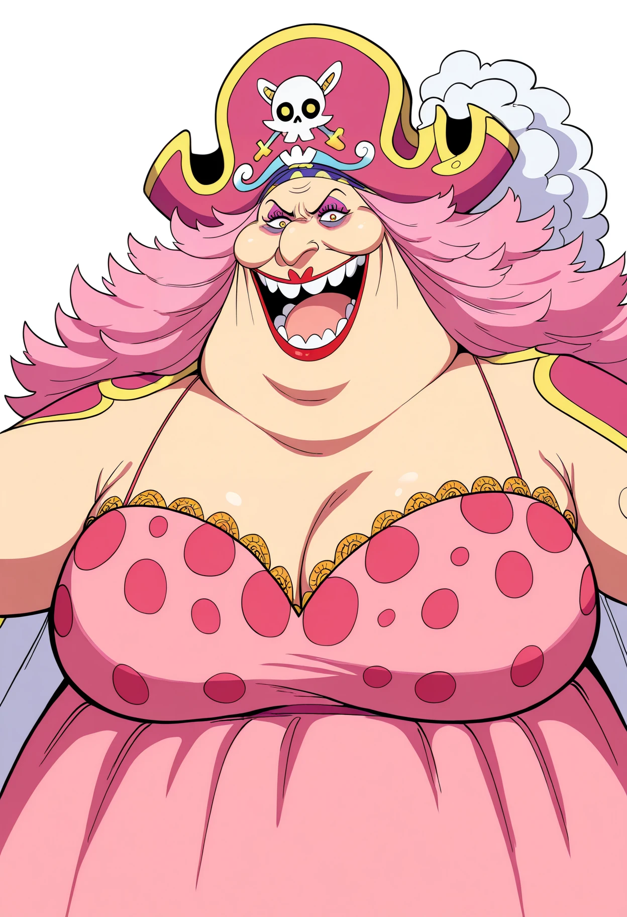 1girl, bigmom, pink hair, makeup, long hair, brown eyes, lipstick, fat