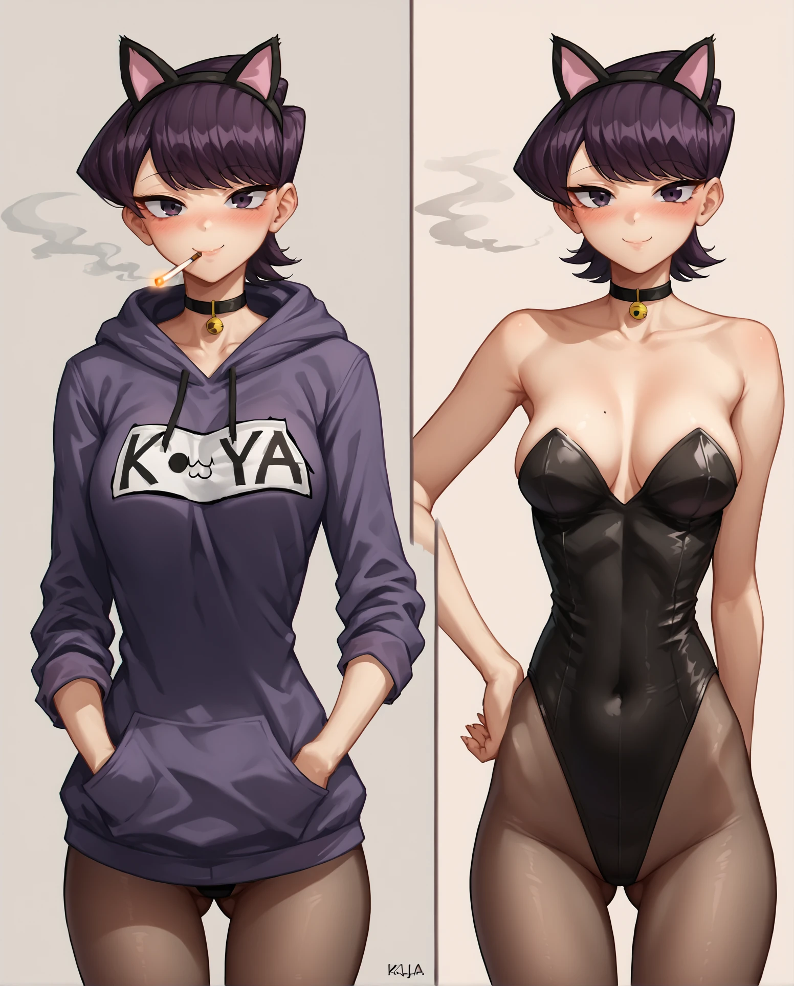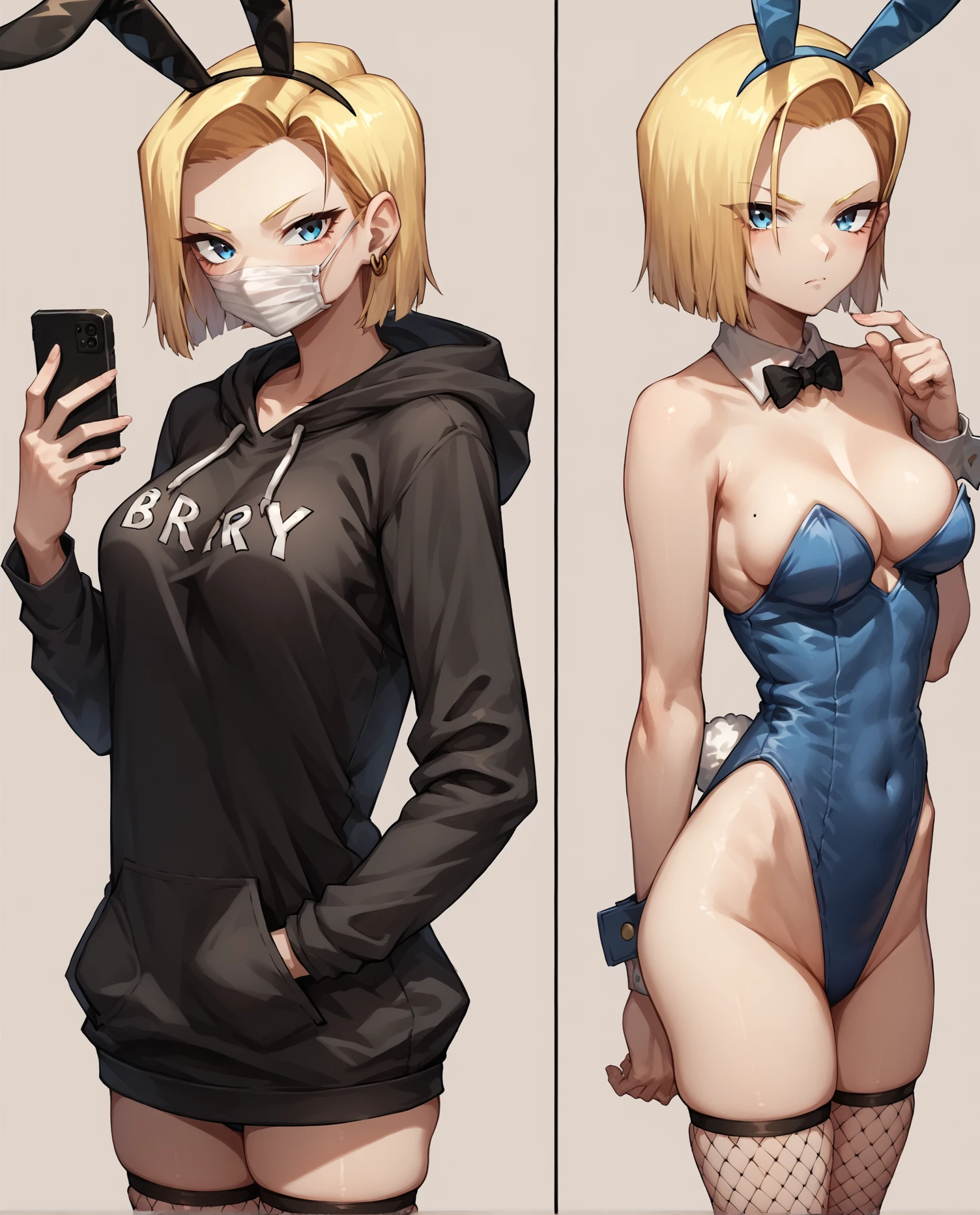 Trained on 42 images of a girl in a playboy bunny outfit then an images of her wearing a hoodie over it.
