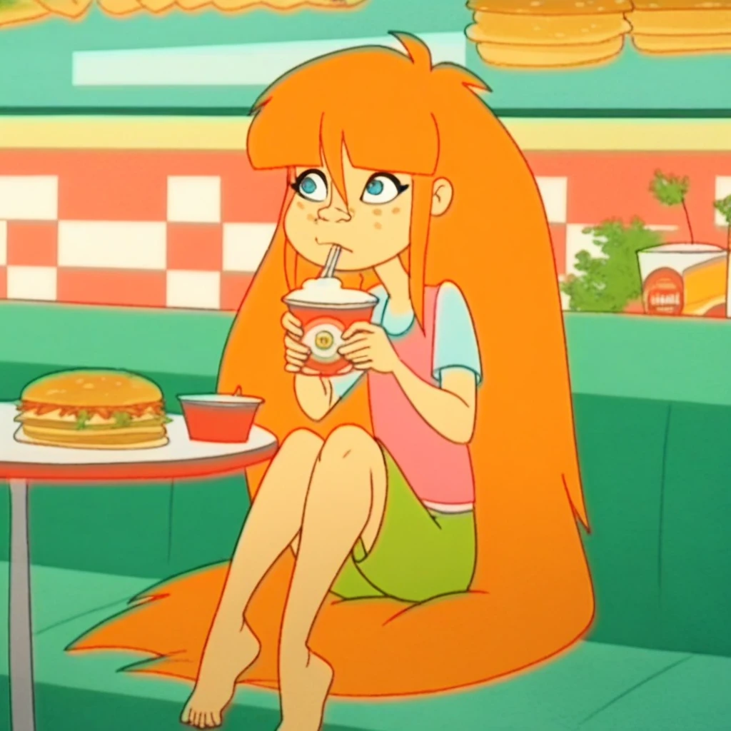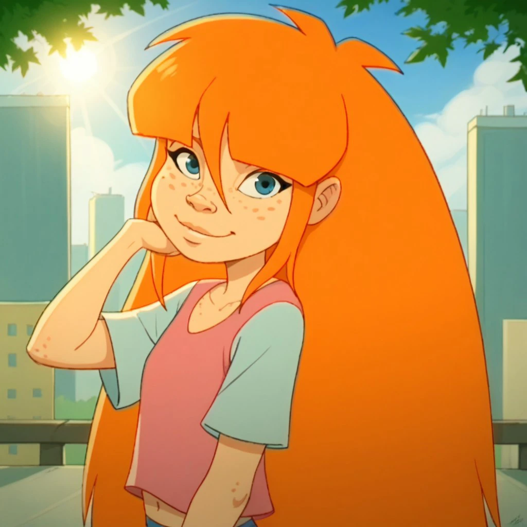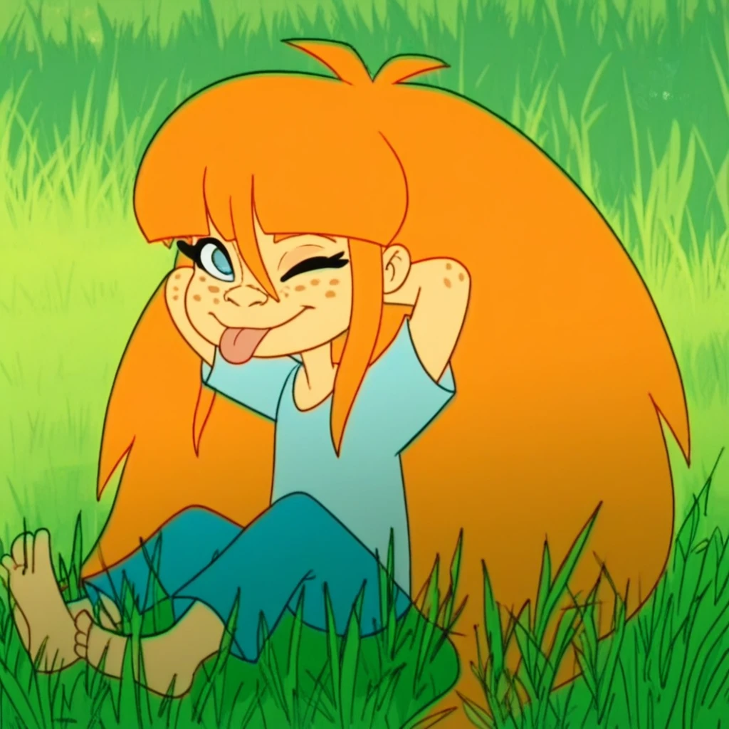 tupu, orange hair, very long hair, blue eyes, freckles,