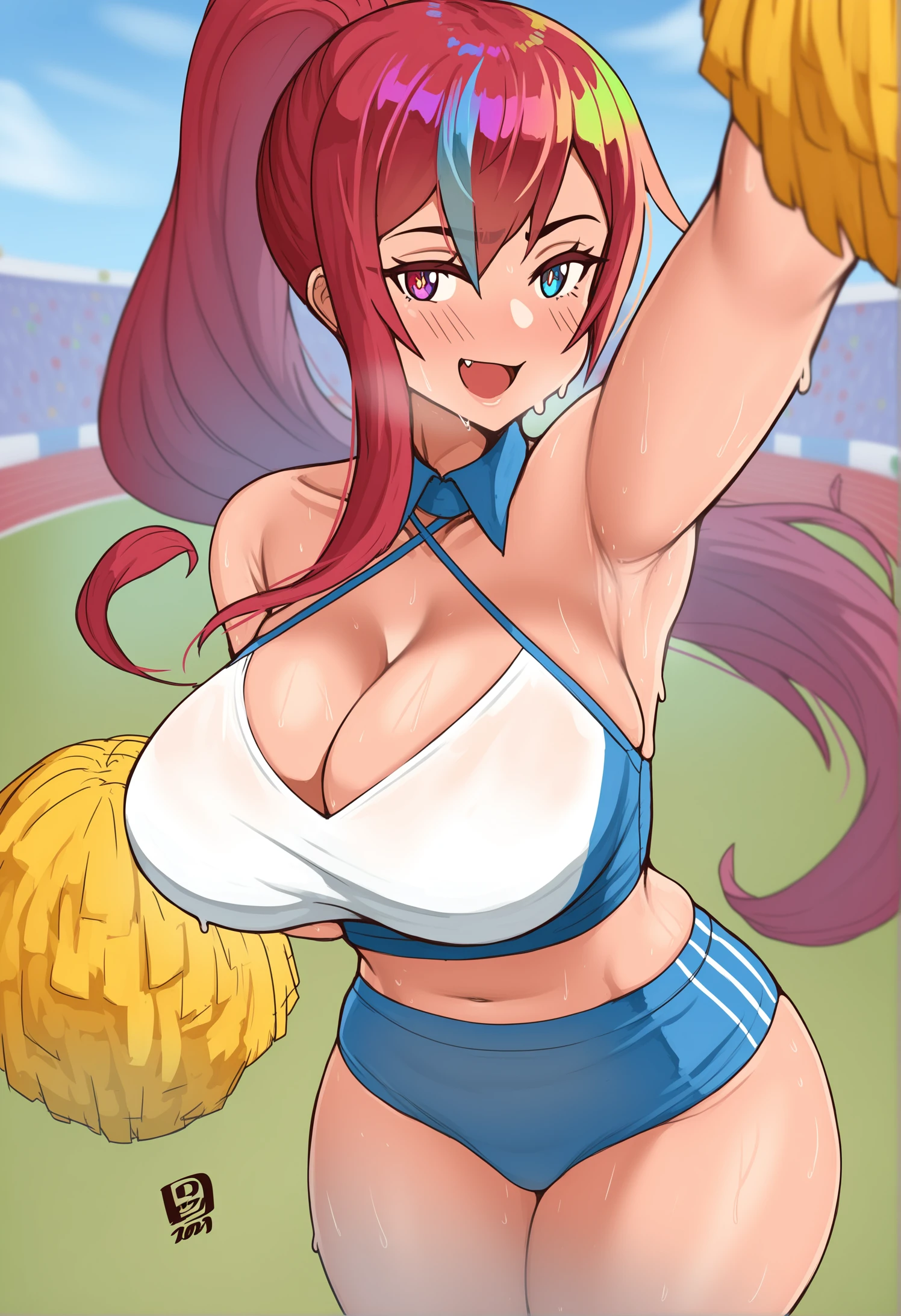 New dataset from Pony version. Overall, it's pretty good, though it creates a weird rainbow foil effect on hair sometimes... the VPred model doesn't do that despite being trained with the same settings (except for v-param and ZT-SNR of course).