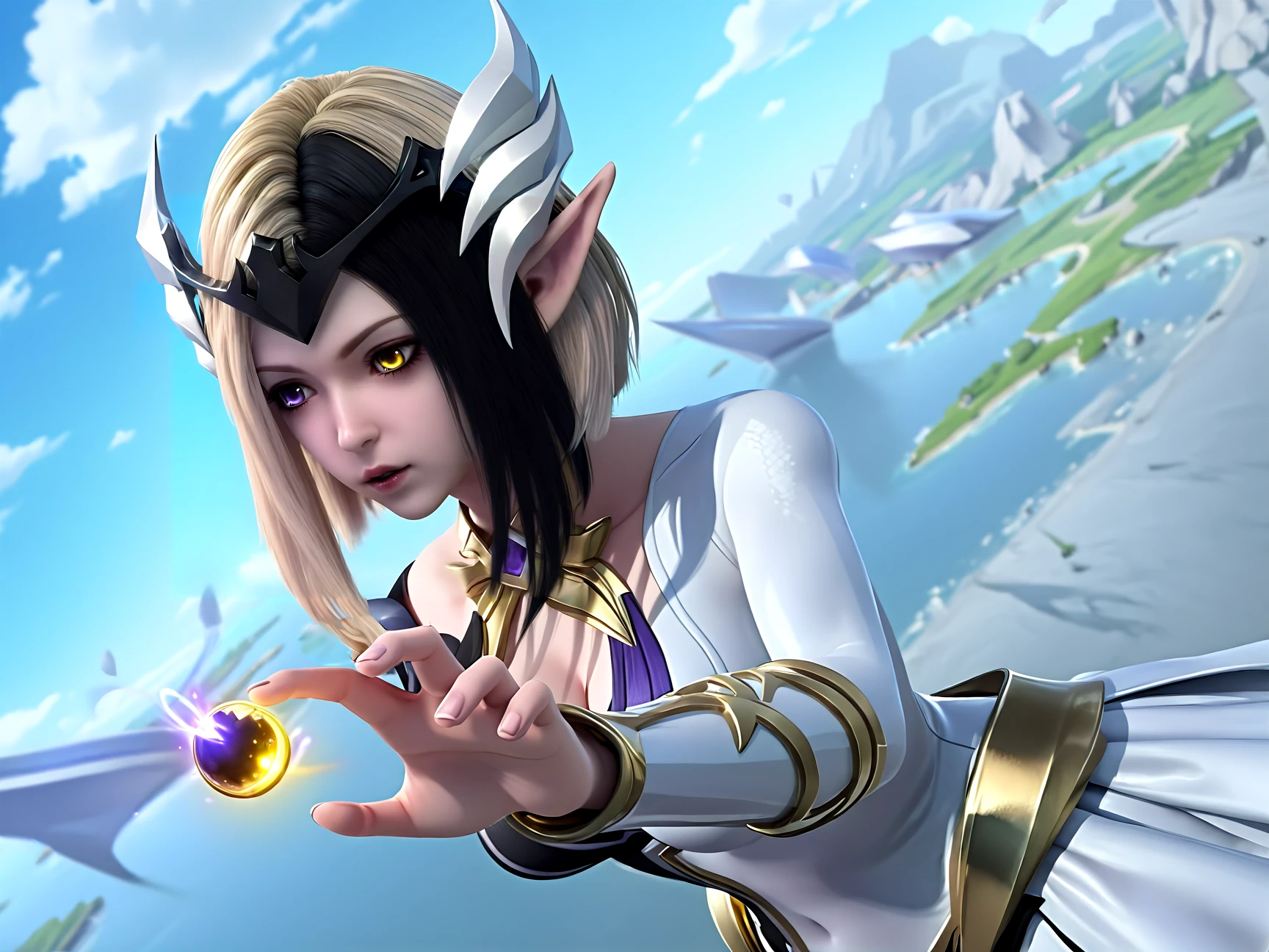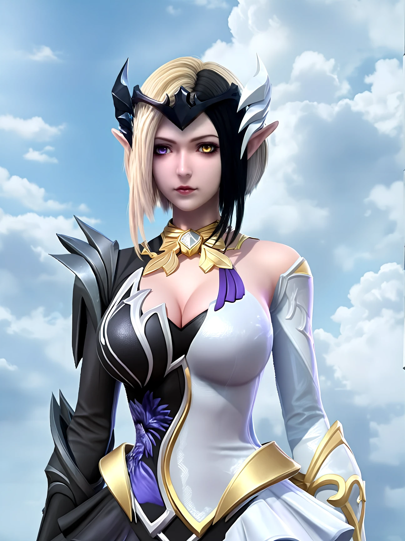 ADETAILER PROMPT: <lora:lunox_def_mlbb_IL:1> detailed face, realistic, heterochromia, two-tone hair, hair ornament, hairband, yellow eyes, purple eyes, pointy ears, blonde hair, black hair