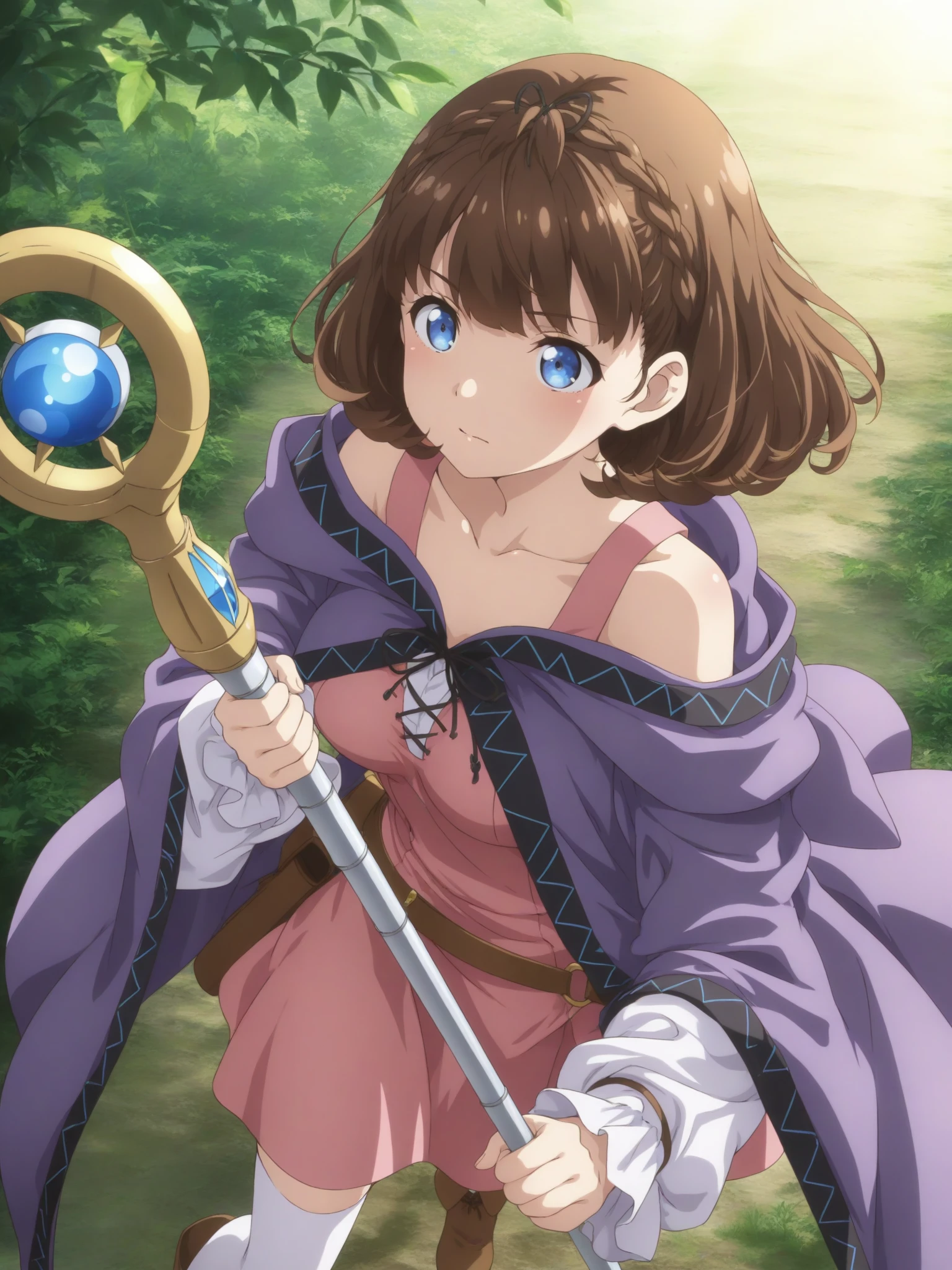 Other: (purple hooded cloak), (silver staff, holding staff)