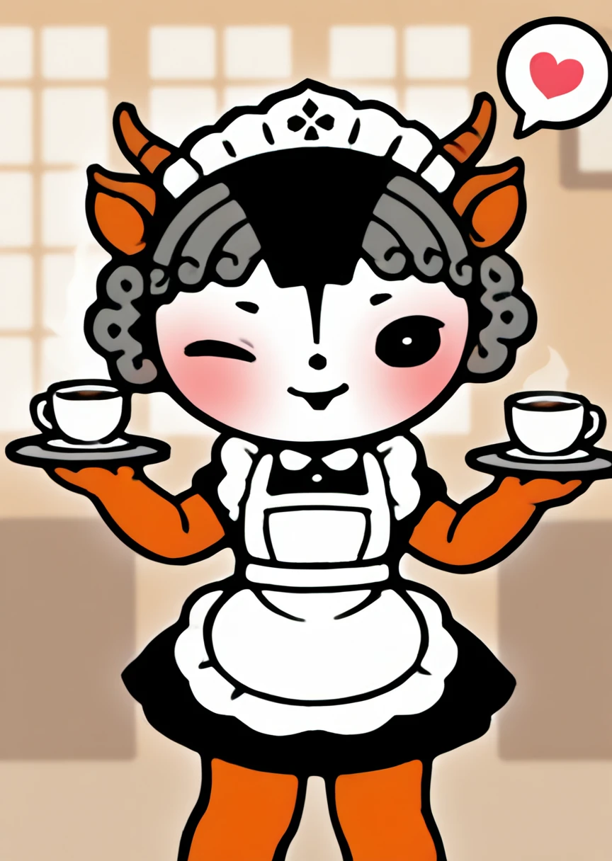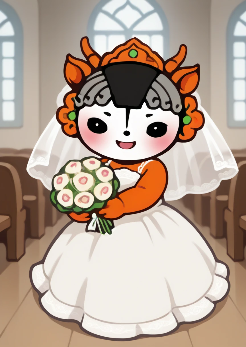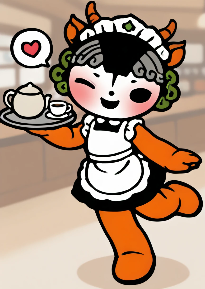 Prompts: yingying, grey hair, headwear, dot eyes, white torso, orange arms, orange legs,