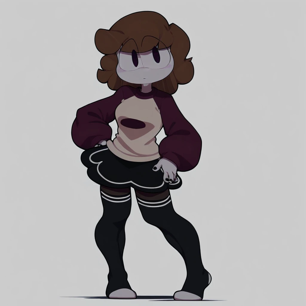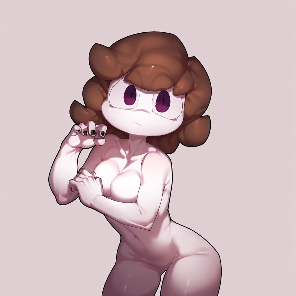 Score_9, score_8_up, score_7_up, 1girl, solo, HappyLikeAWall, gummy girl, white skin, purple eyes, brown hair, medium hair, black nails