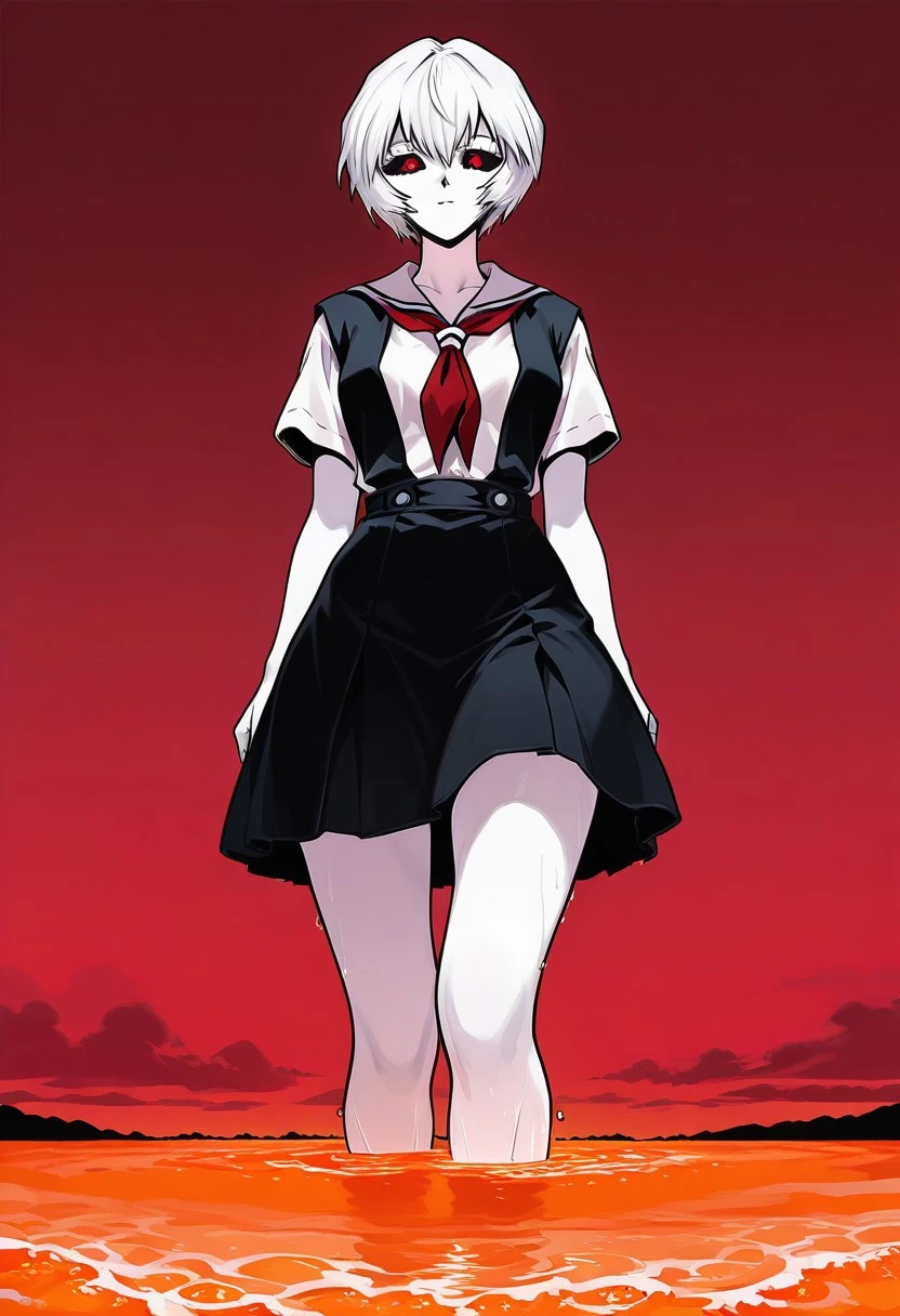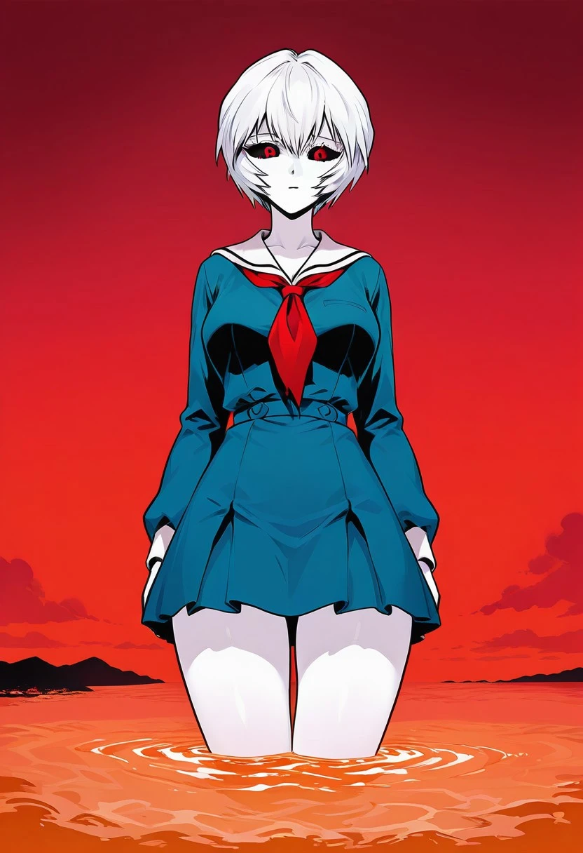 Basic prompt would be something like: "1girl, GNR, Rei Ayanami, white skin, white hair, giantess, red eyes, black sclera, nude."