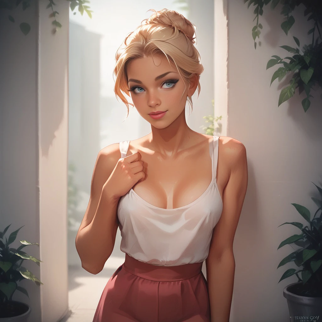 thoty_katieXL, red bra, white button up shirt, pleated skirt