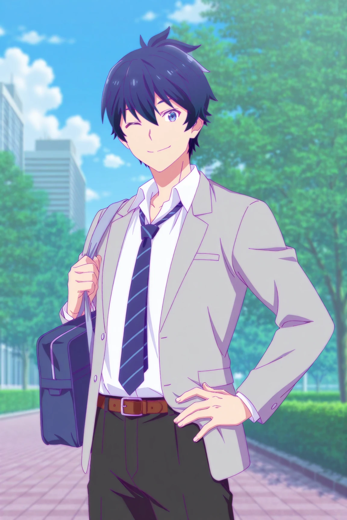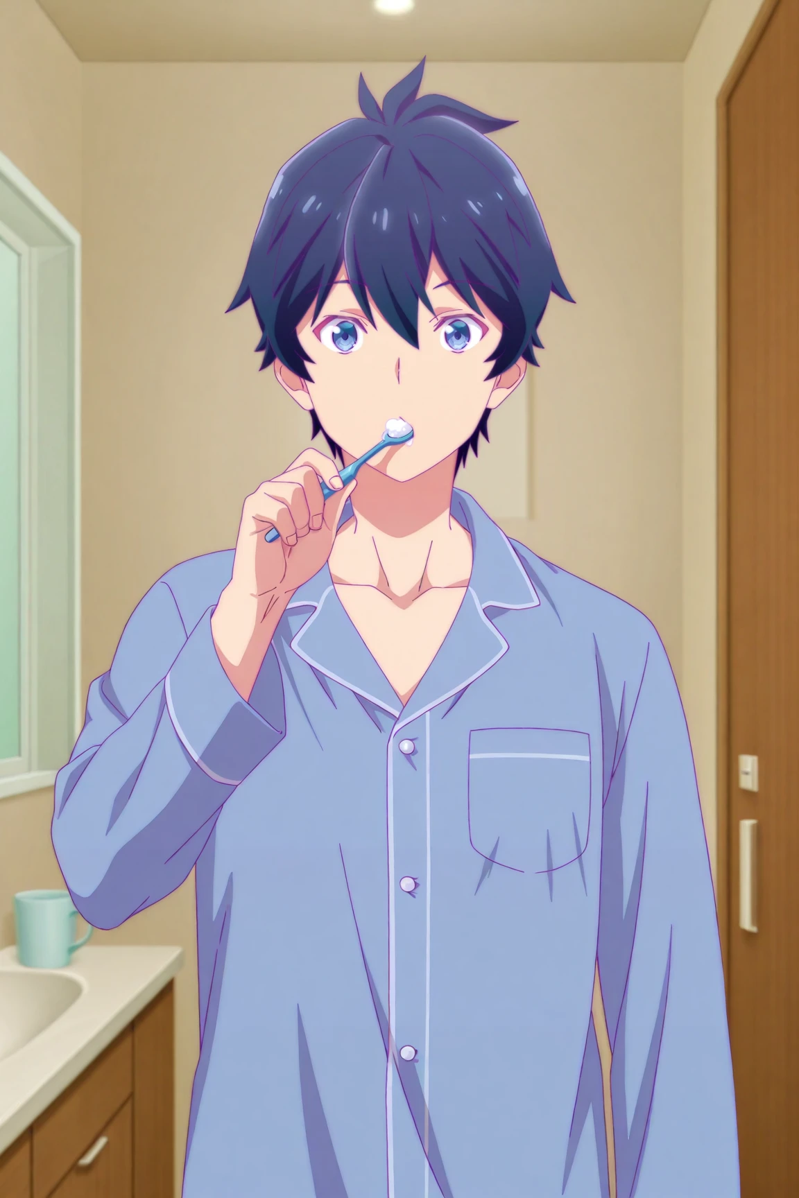 Asahi Kashiwagi, blue hair, blue eyes
