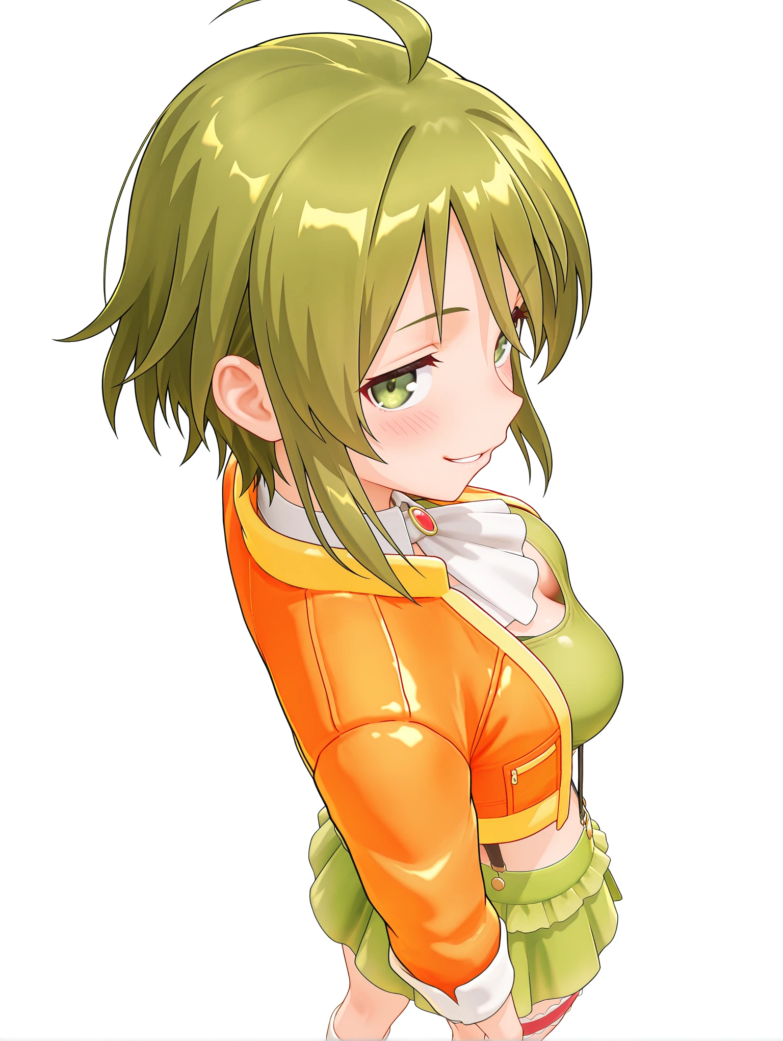 トリガーワード・m_gu_mi,ahoge,short hair,green hair,green eyes,