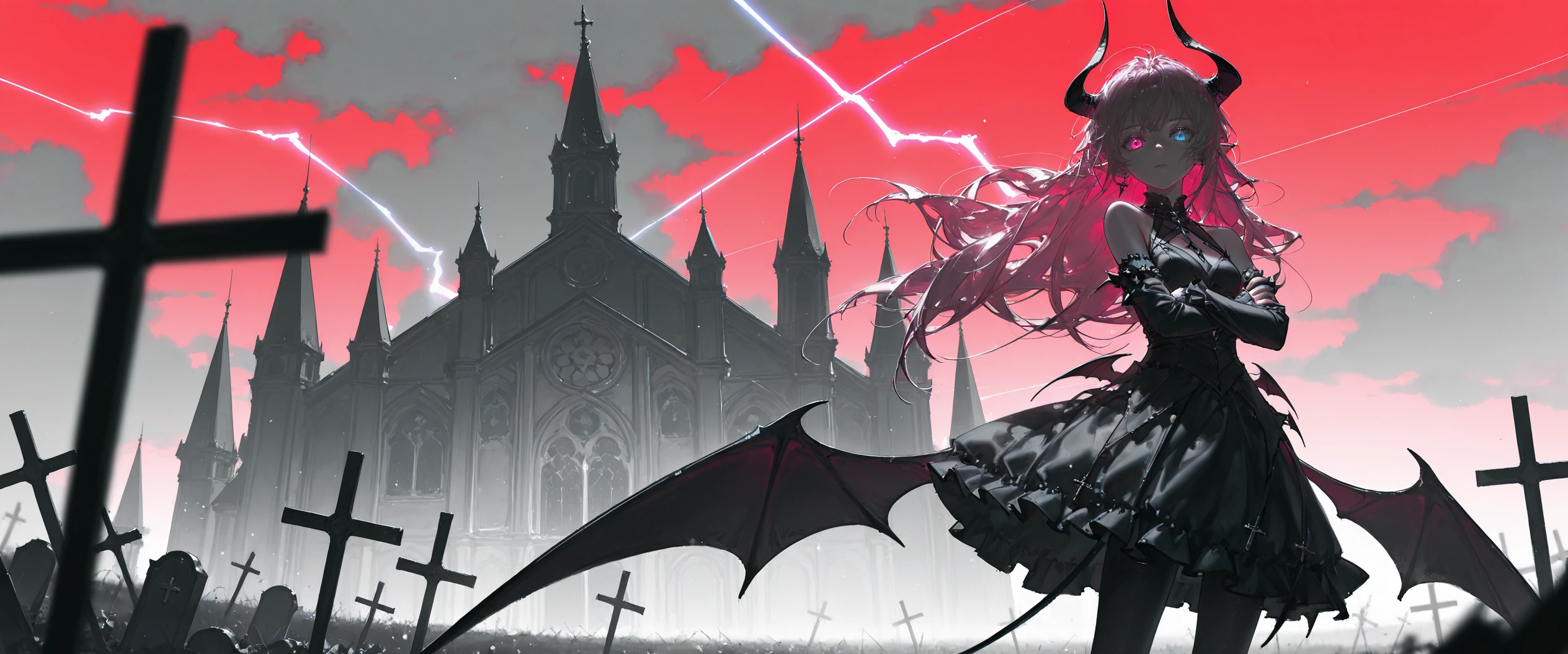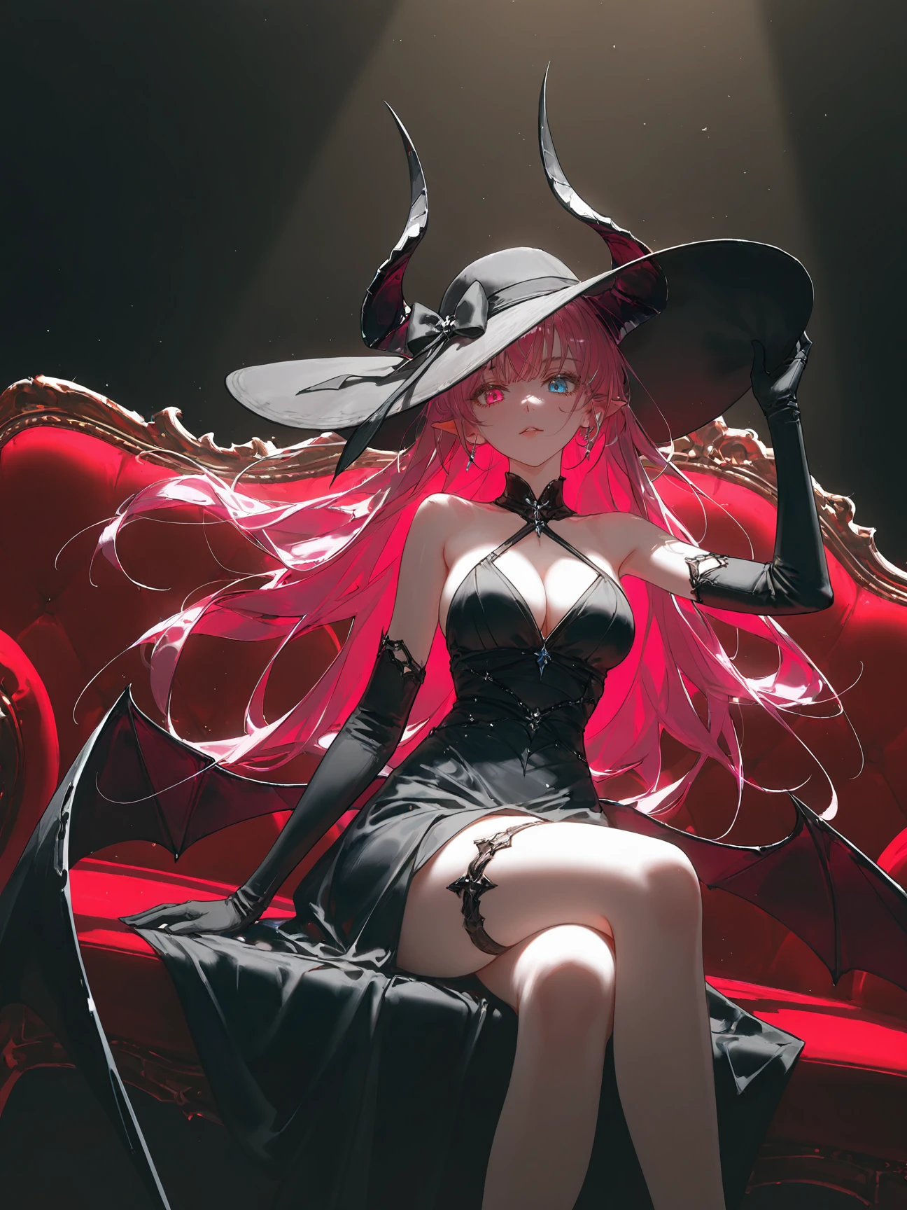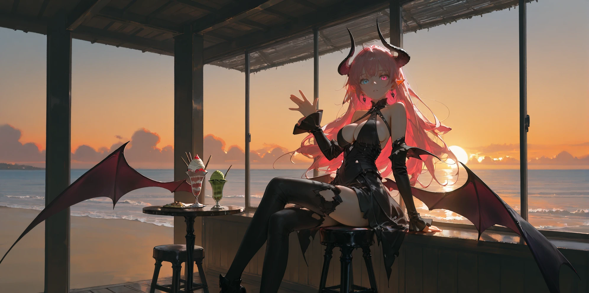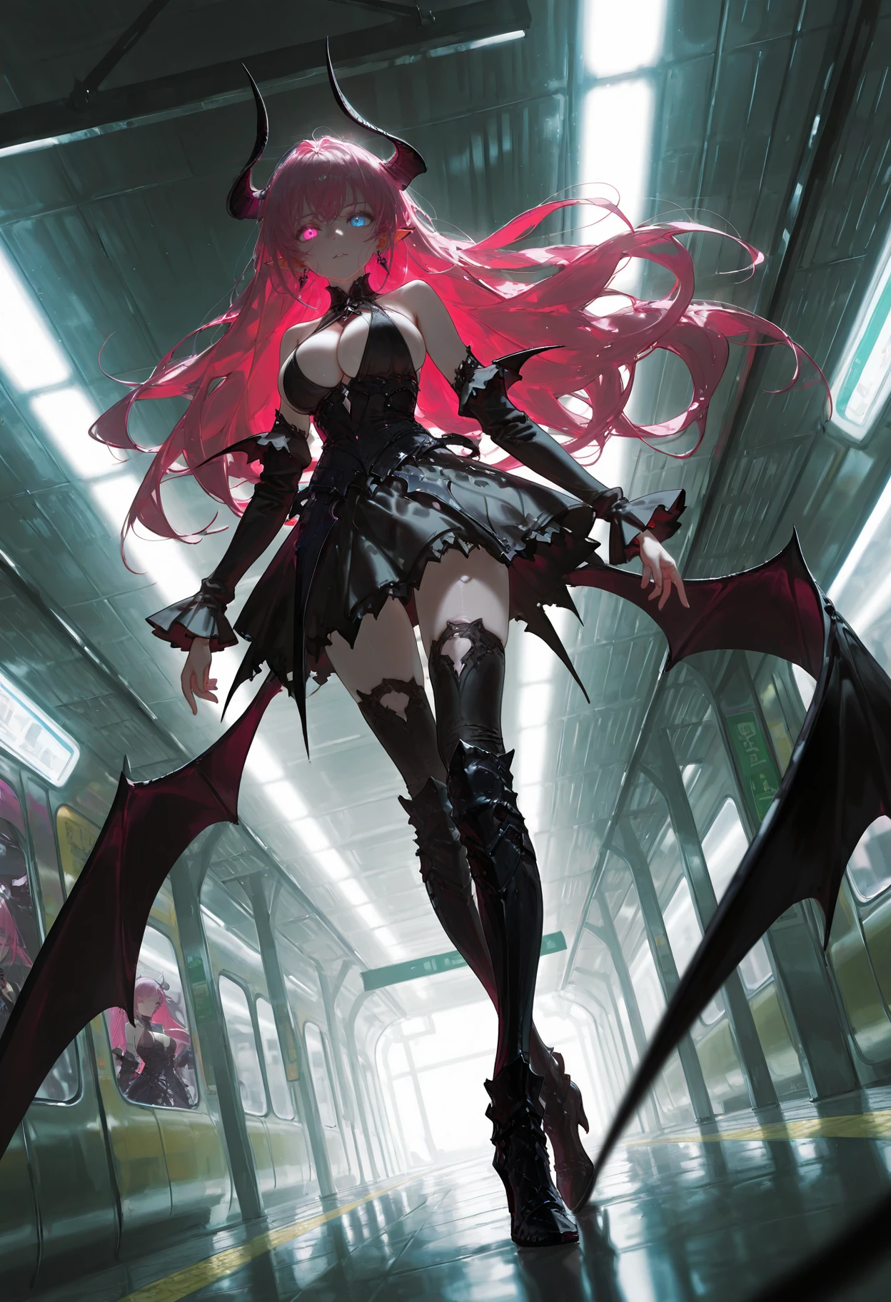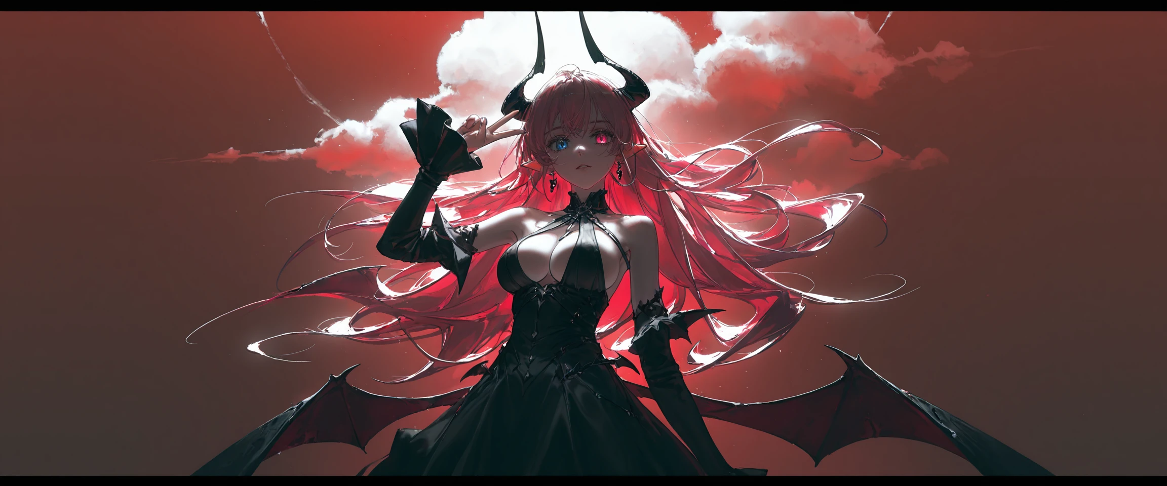 demon horns,demon wings,low wings,KMS long pink nails,fangs,