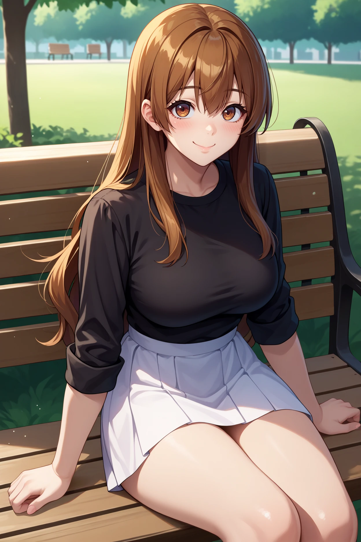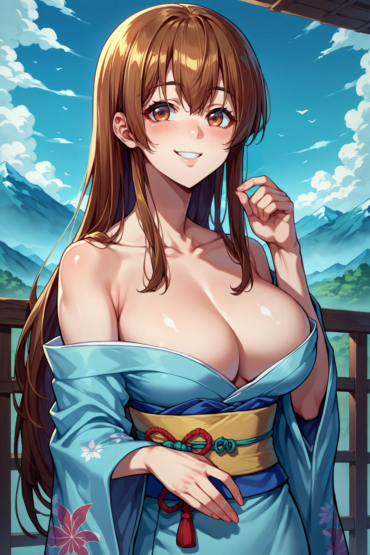 gbnan, brown hair, long hair, brown eyes, large breasts