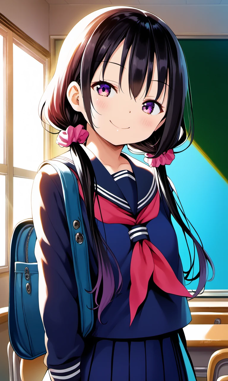 low twintails, hair scrunchie,
