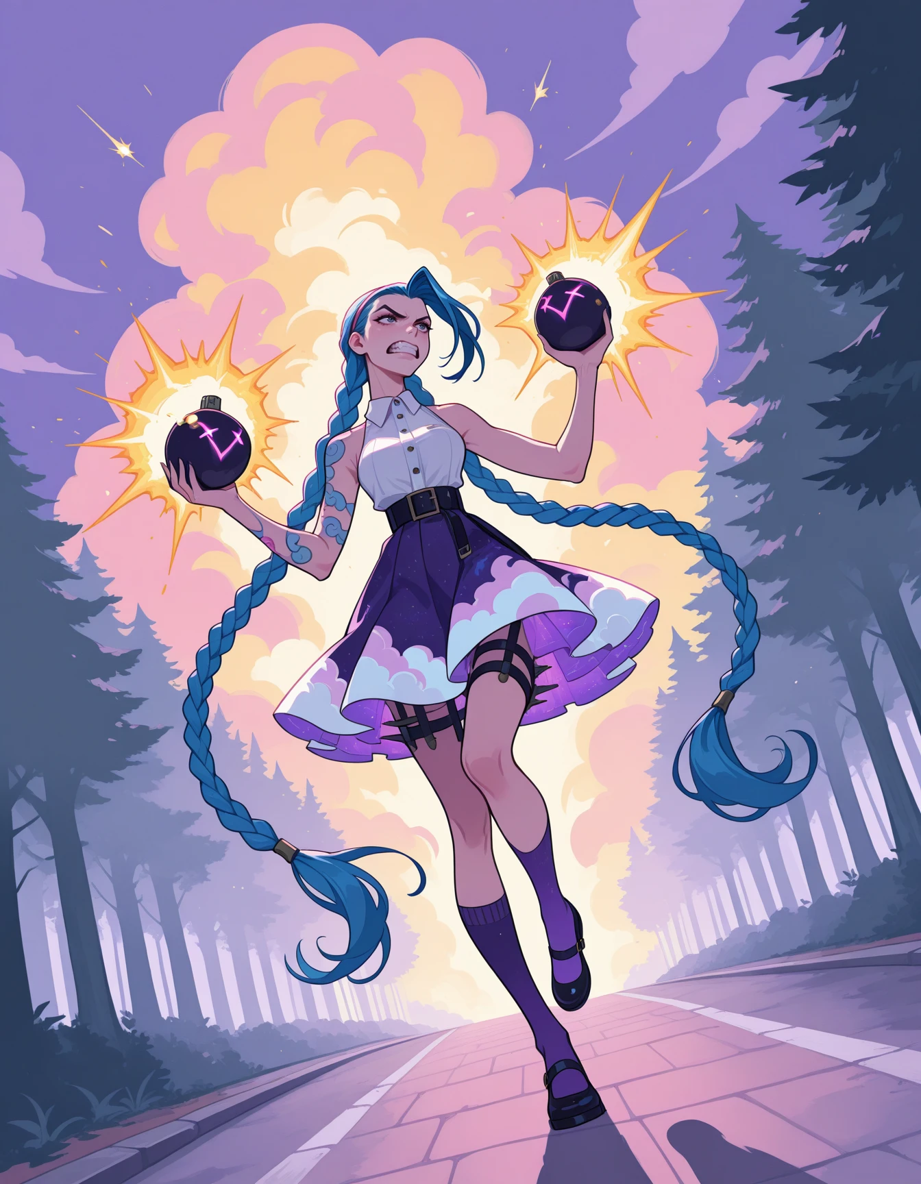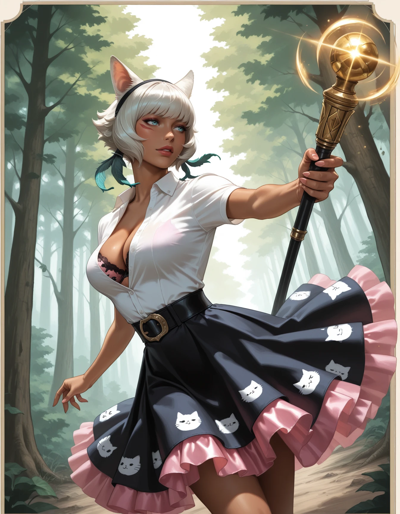 Try patterns, spiderweb print skirt, floral print, cat print, polka dot print etc. Not trained but it should work.