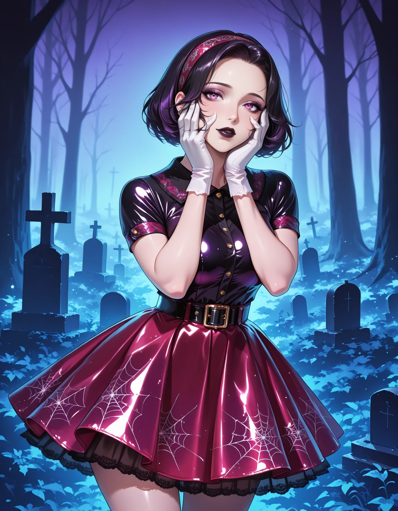 Invoke with shirt, skirt, underskirt, voluminous skirt, crinoline, belt, short sleeves, shirt collar, vintage hair, socks, mary janes, gloves