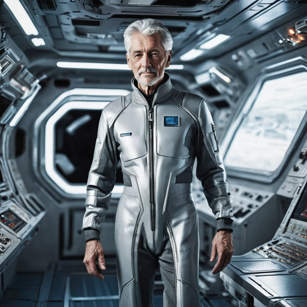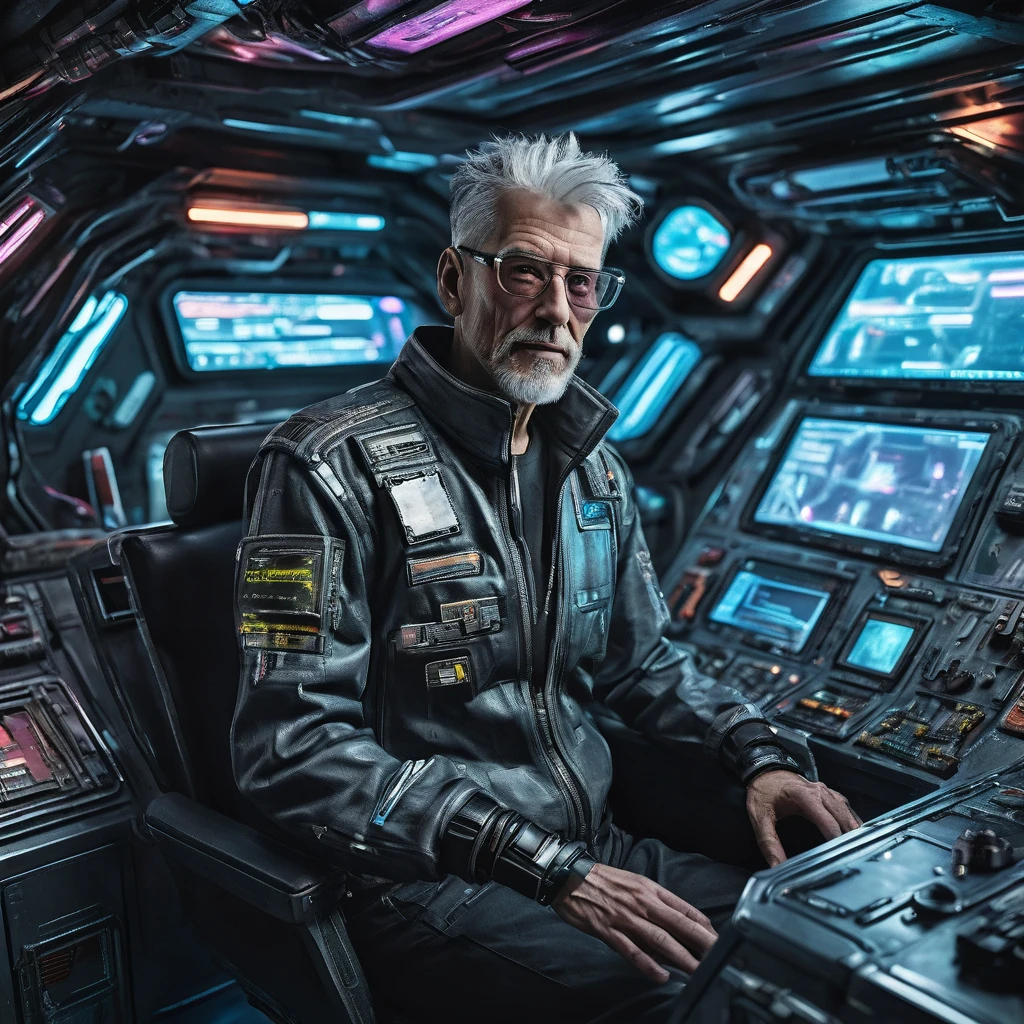 He is a man in his an experienced man in his 50s with grey hair and is meant to act as an advisor or mentor for the younger members of the crew, but isn't their leader.
