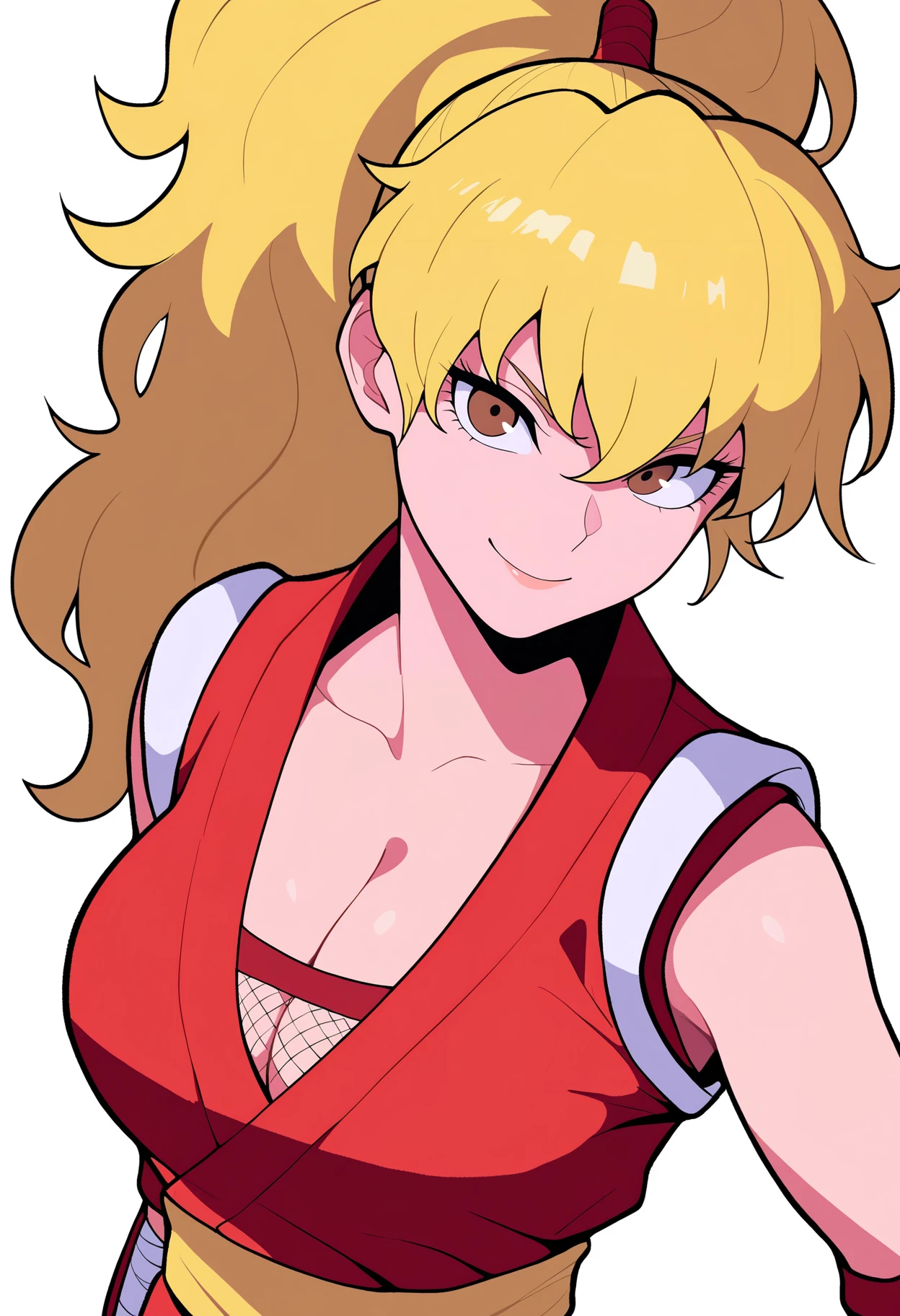1girl, genryuusai maki, high ponytail, blonde hair, brown eyes