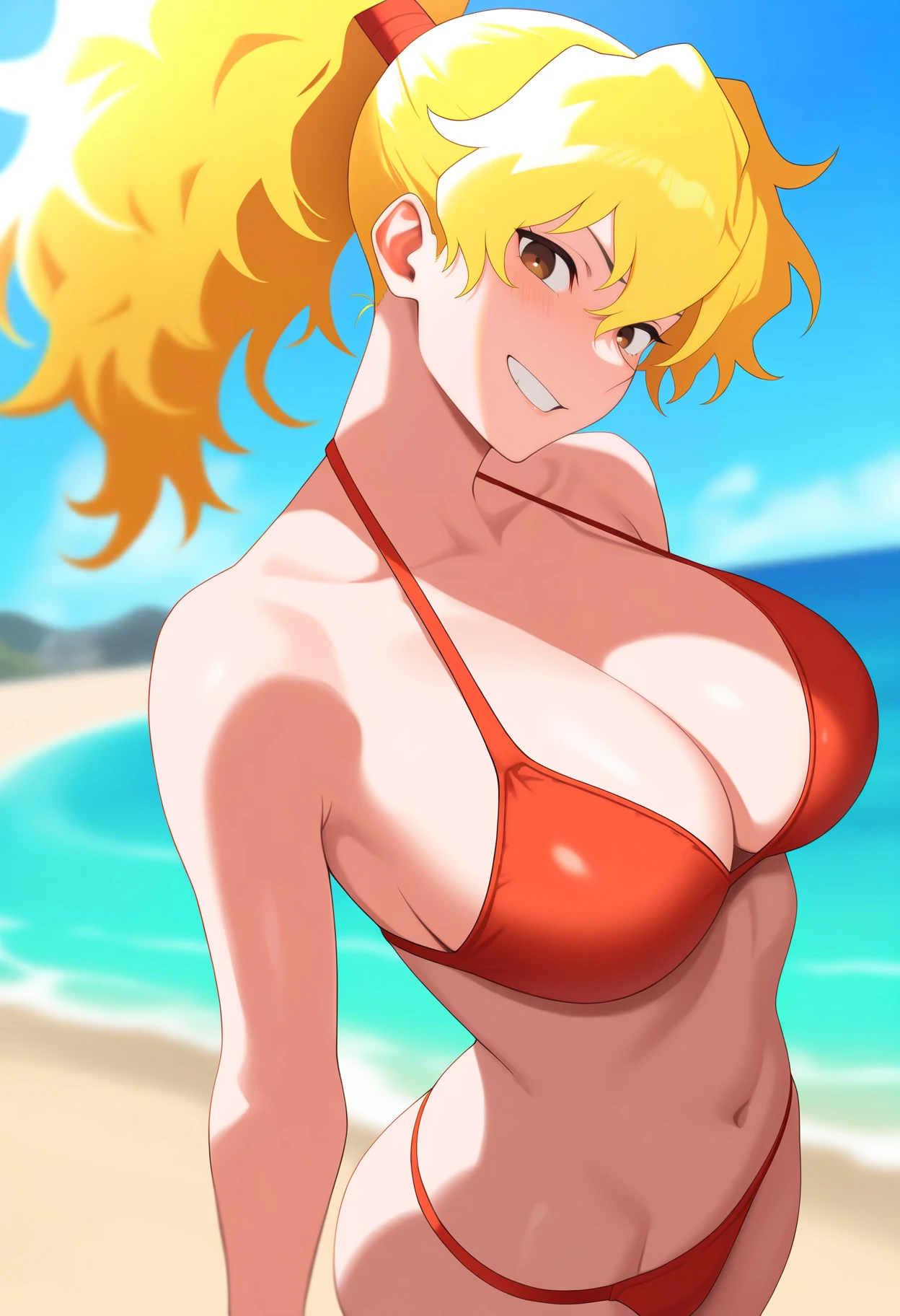 Basic prompts : 1girl, genryuusai maki, high ponytail, blonde hair, brown eyes