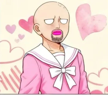 TakohachiOYJJK, 1man, solo, bald, pink lips, black facial hair