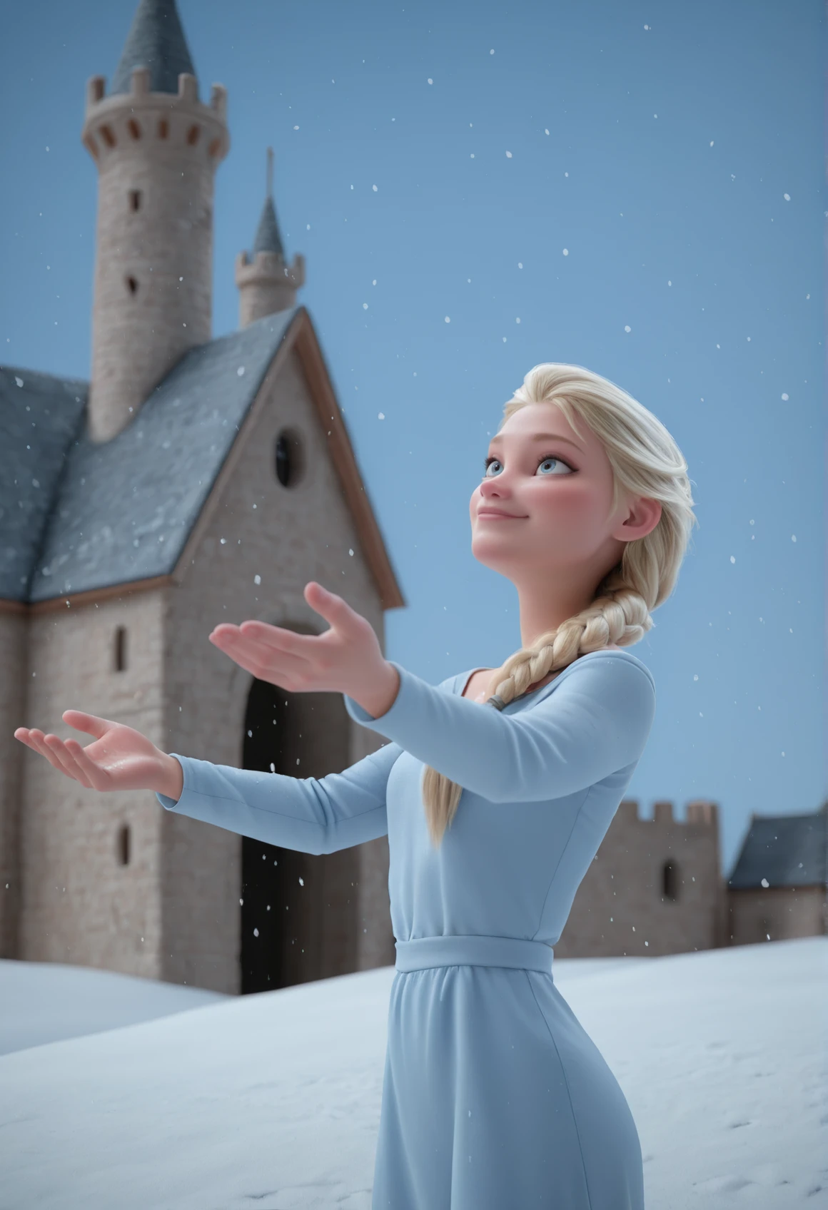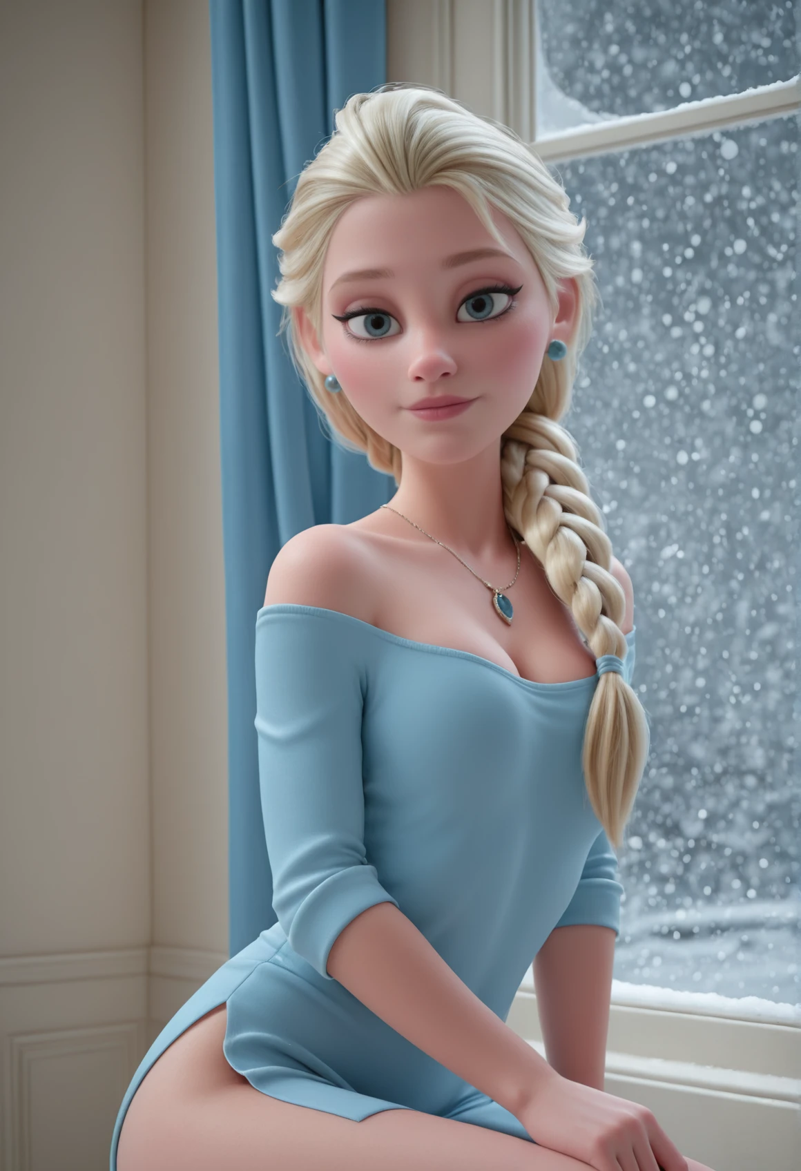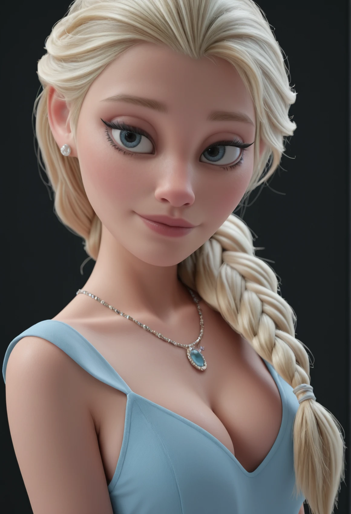 3lsaFr0zen, blonde hair, long hair, single braid, hair over shoulder, blue eyes