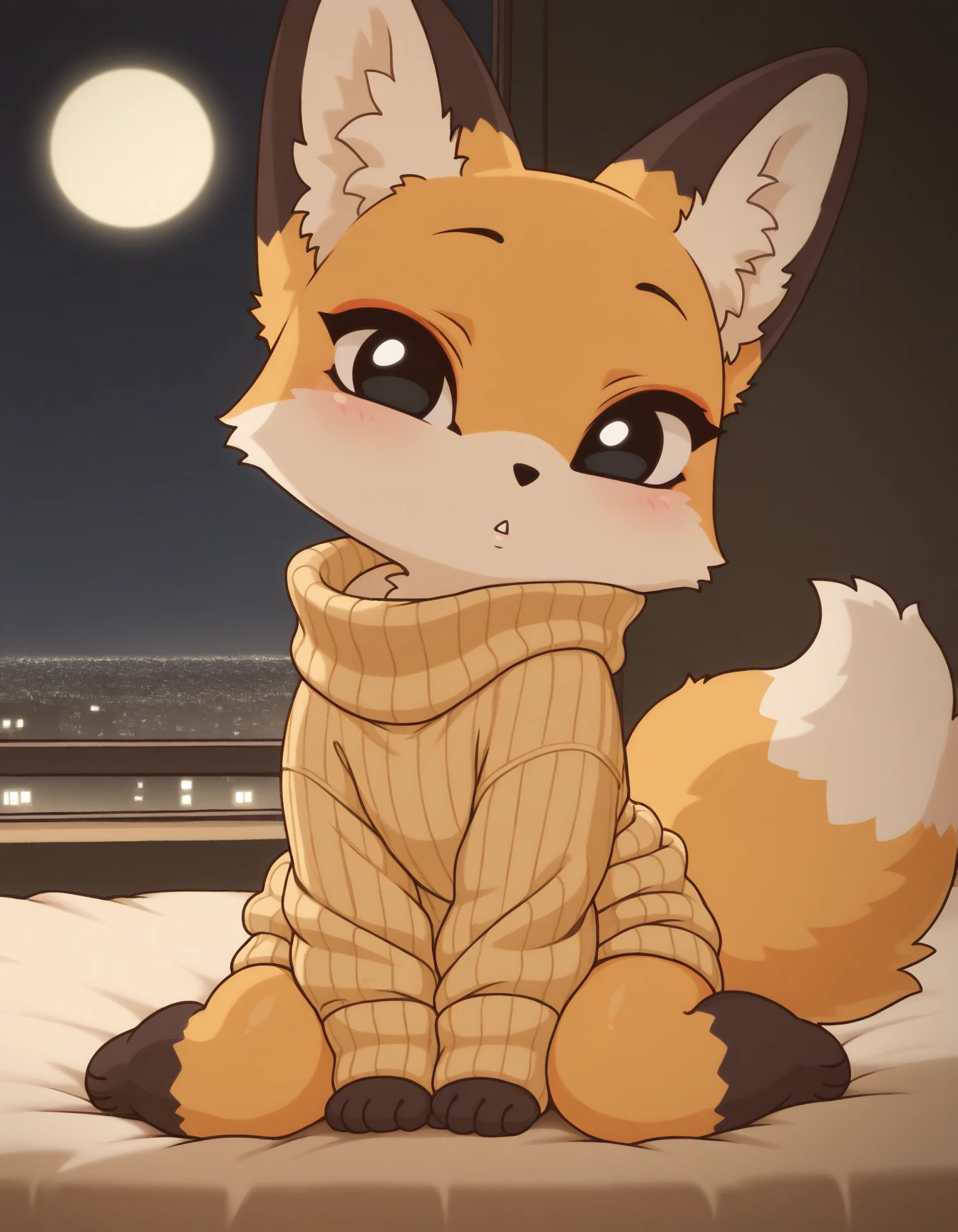 Promt: source_furry Luna, orange fur, fox, black eyes, fox tail, two tone fur.