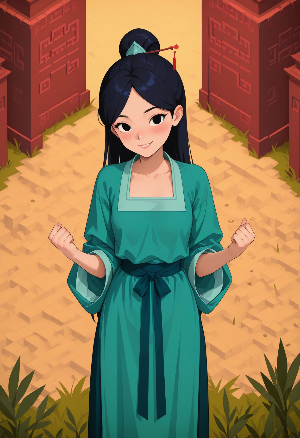 This LoRA will give your images a Monument Valley vibe. Specifically, the general art style will become sort of soft and flat, and certain things like background elements and clothing/accessory details will take on a more geometric form. Sometimes this geometry is more subtle (like in the first showcase image), and sometimes it can be much stronger (like some of the other showcase images). It all depends on your prompt and seed. I ended up liking this LoRA way more than I thought I would, but it's still not without its faults, which I'll go over below.