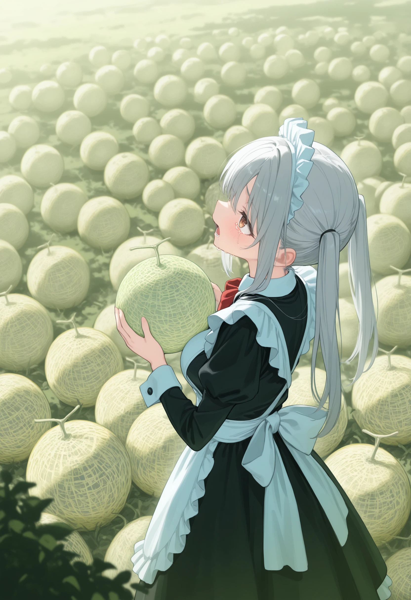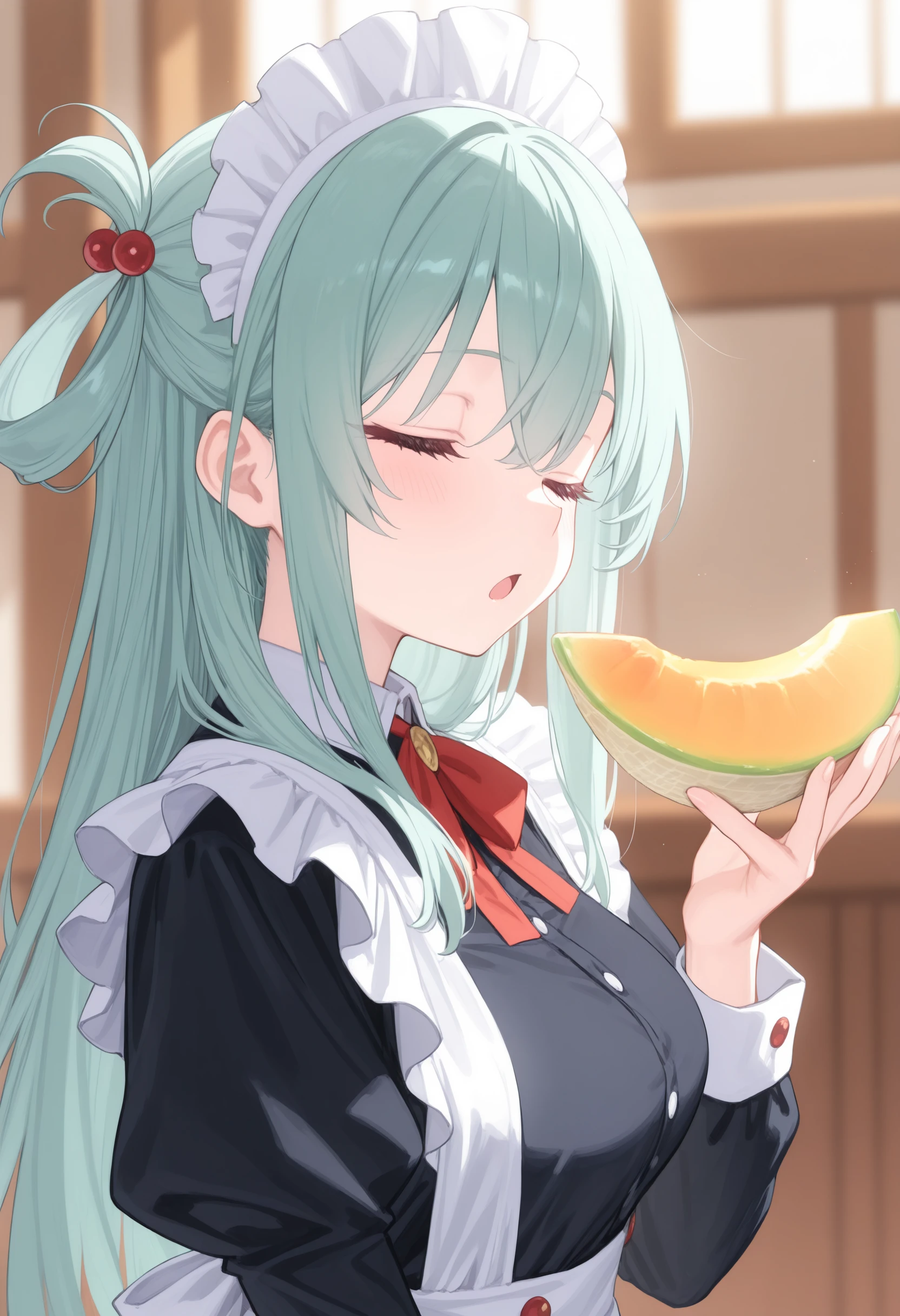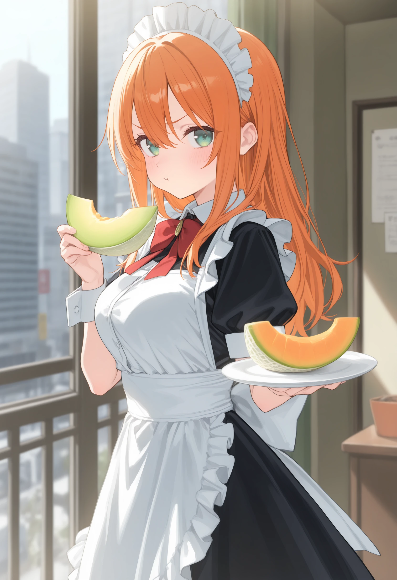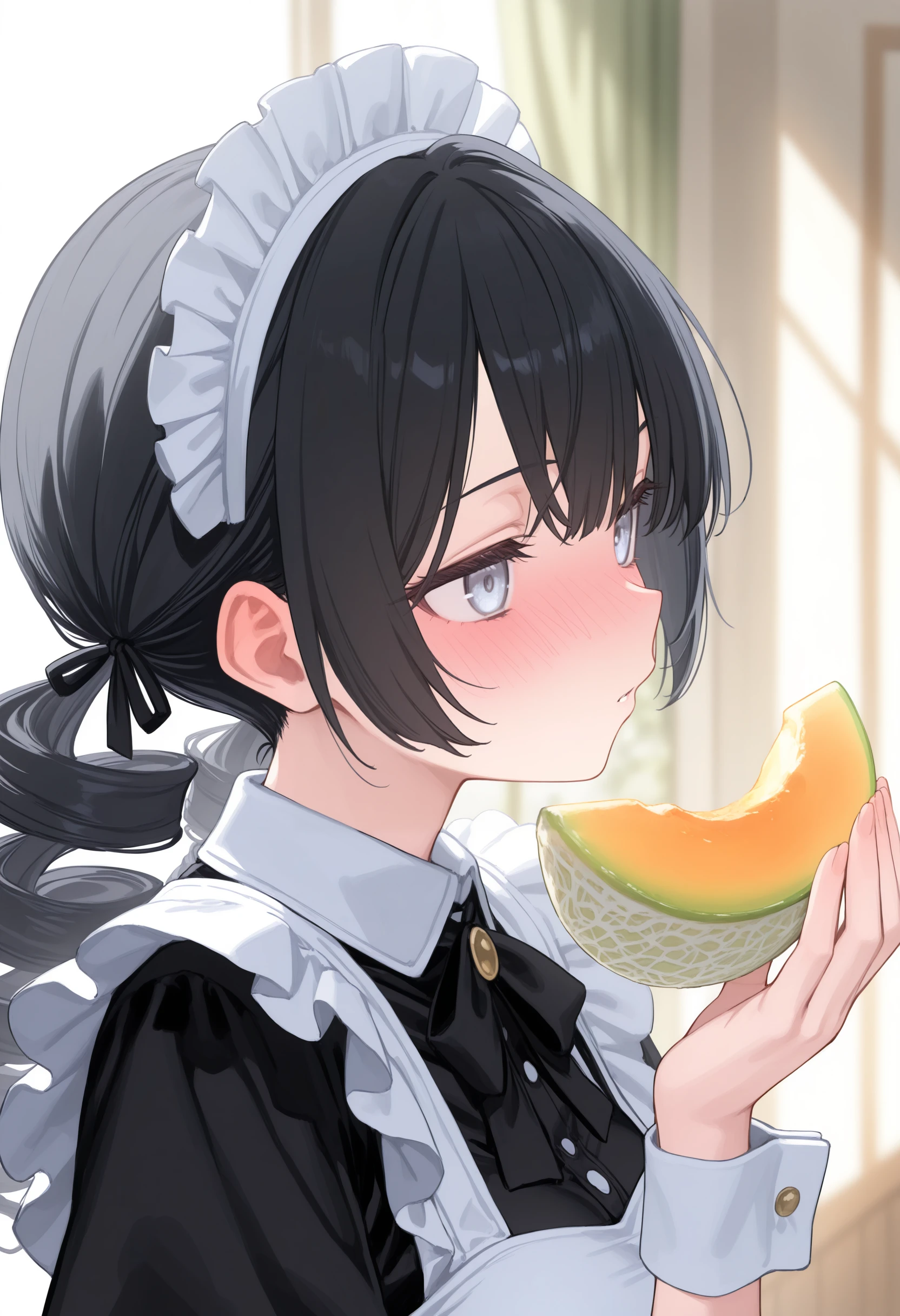 網目模様のあるネットメロンを出したりそれを切って食べさせるLoRAです。