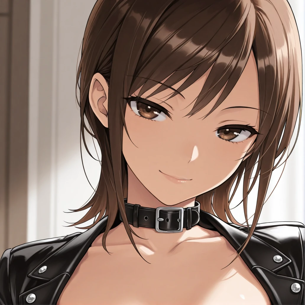 ch1gus4,elbow gloves ,short_sleeves, pink_nipples, navel, corset, zipped leather_panties, garter_belt, belt_collar,