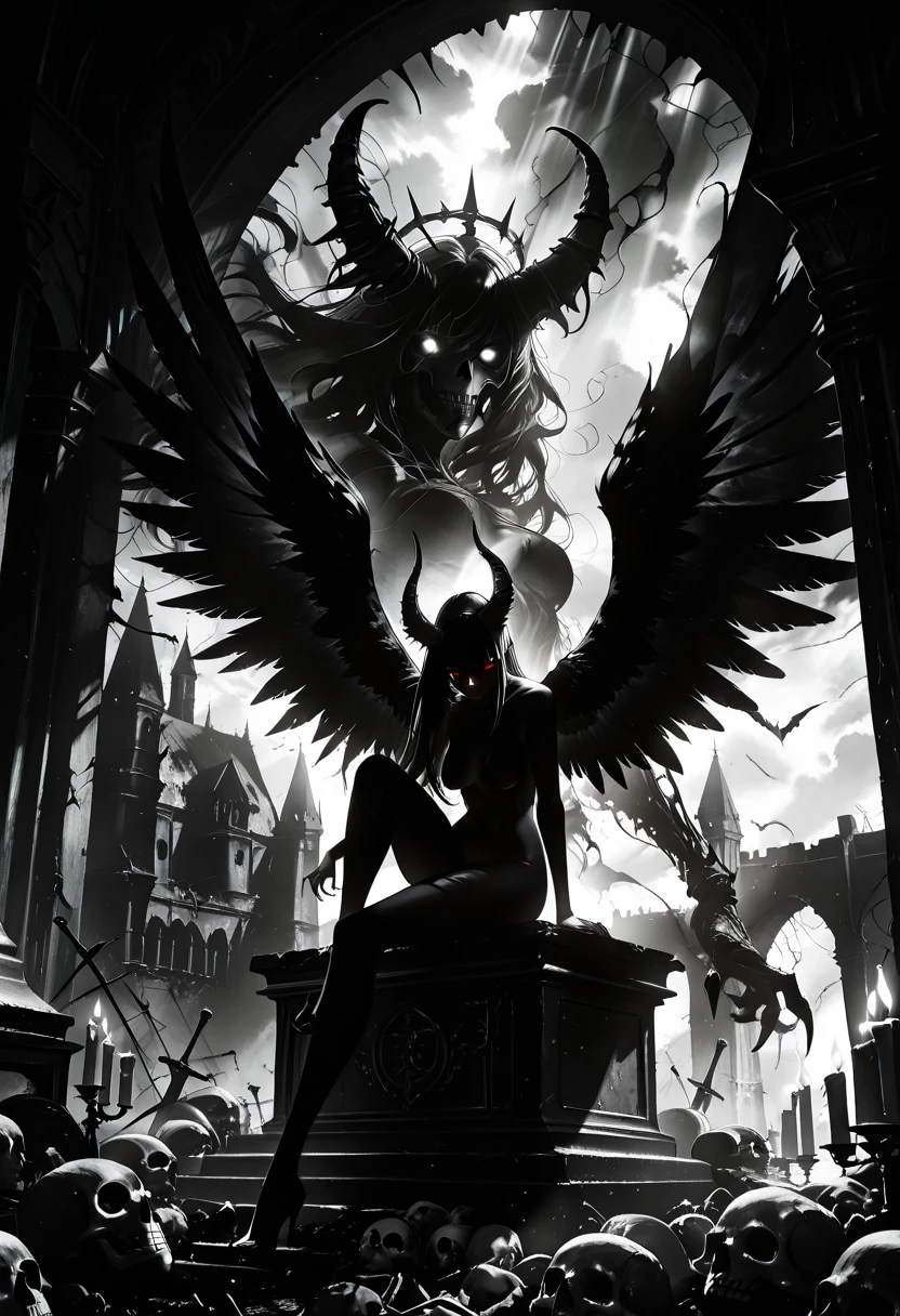 Easy Prompt : EternalDarkness, dark, darkness, volumetric light, monochrome, bad angel, demon, dar