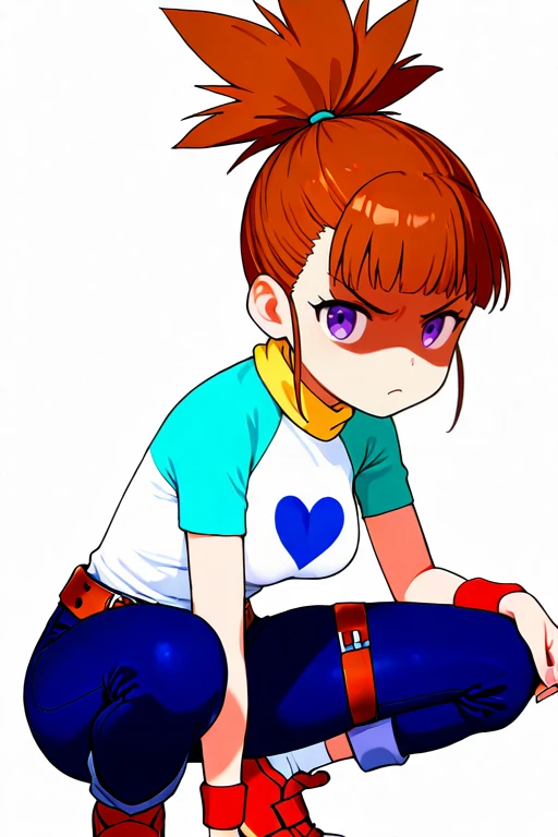 1girl, solo, ruki_makino, high ponytail, brown hair, purple eyes,