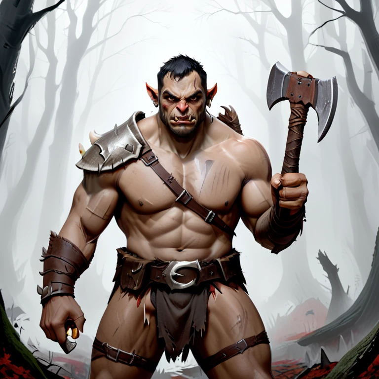 Leans super heavy into axes, and shirtless. Prompt appropriately.