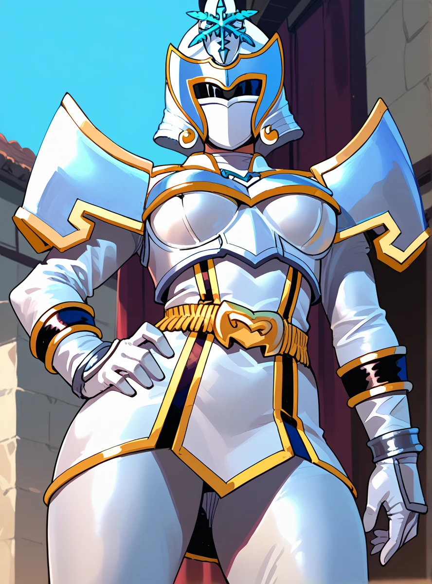 armor, 1girl, female focus, gloves, , shoulder armor, breastplate, tokusatsu ,skin tight, belt helmet mask, shiny skin, thick thighs, thick arms , thick thighs, thick arms,arms ,indoors bedroom all fours,