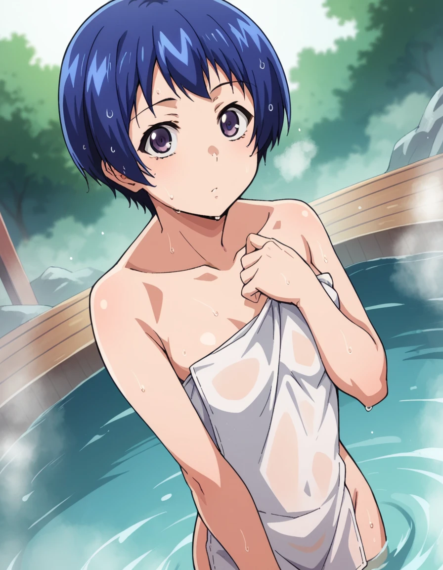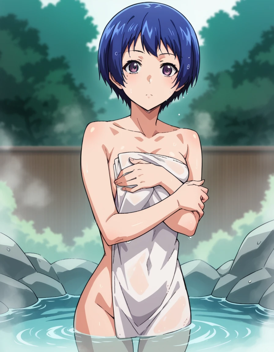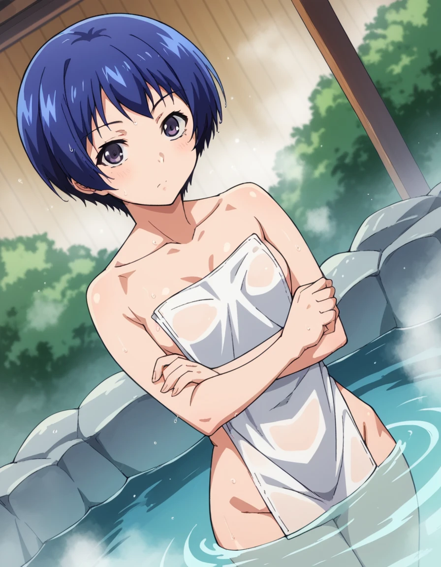 aina yoshizawa, short hair, blue hair, purple eyes,