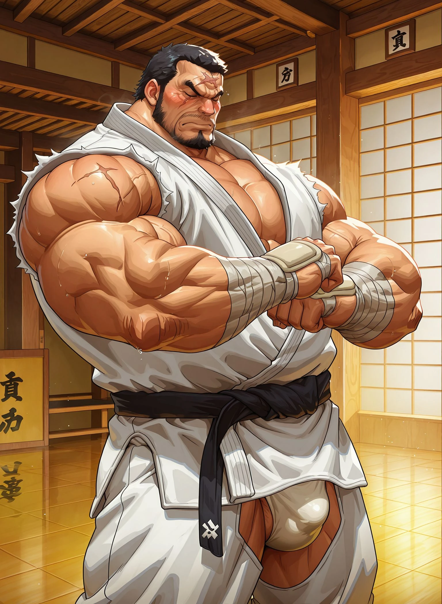 mature male,old,x scar on forehead,goatee,black hair,short hair,closed eyes,