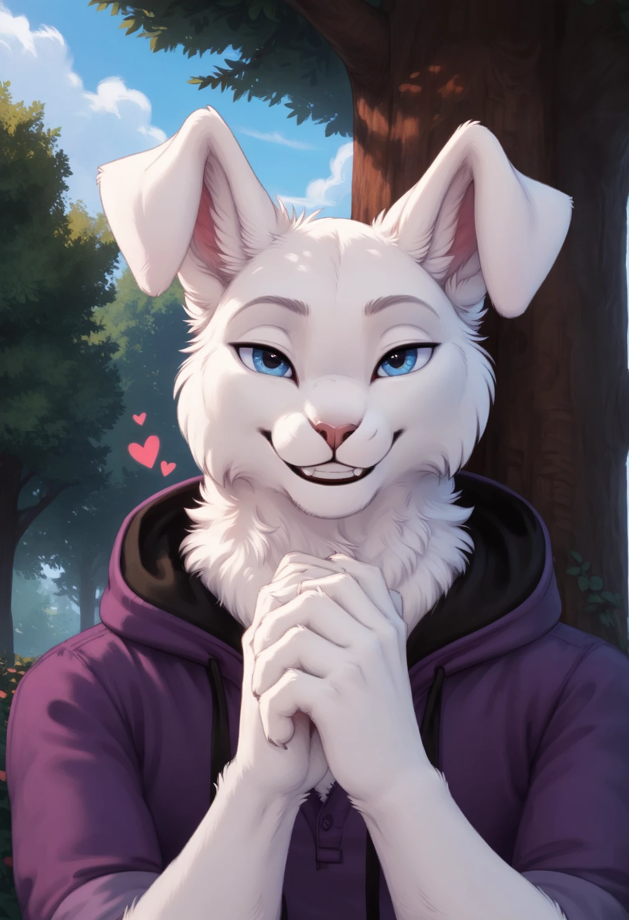 bedroom eyes, detailed eyes, perfect eyes, beautiful eyes, , detailed fur, tail, eyes, realistic fur, , solo, 1 boy, young, (((handsome, detailed face and eyes))), rabbit, solo, detailed fluffy fur , realistic blue eyes, neck fluff, blue eyes, extremely detailed eyes, anthro rabbit, athletic, , buck teeth, rabbit teeth, sexy, tail, eyes focus, anthro hands, detailed anthro hands, detailed fluffy fur, white fur, purple hoodie, sleeves rolled up, , clothing, bedroom, floppy ears, pure white fur,
