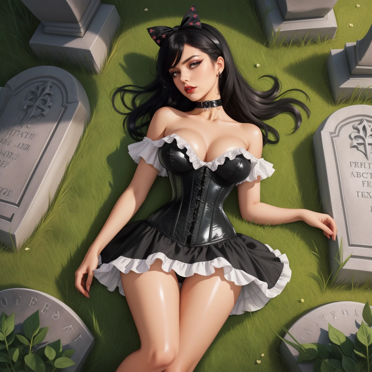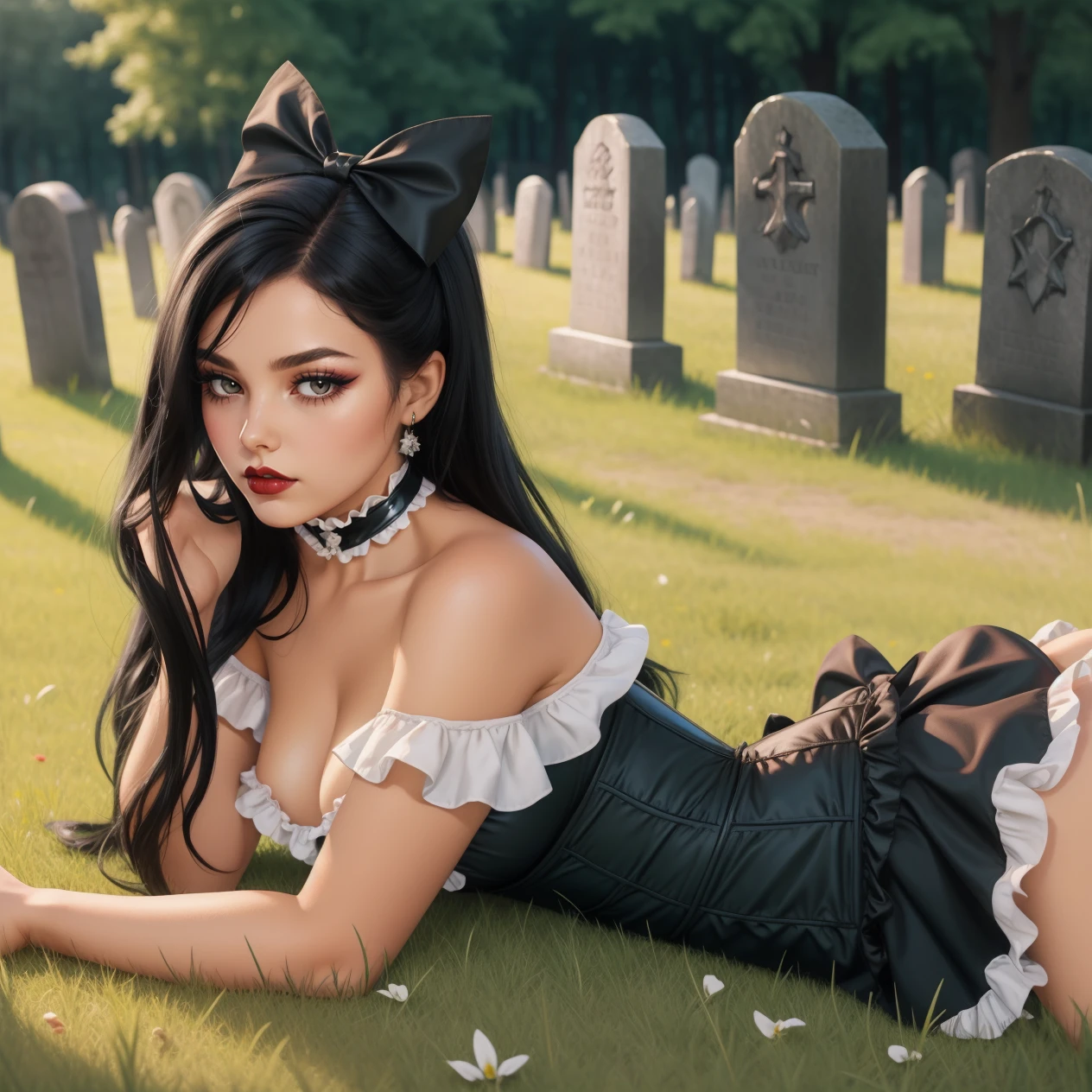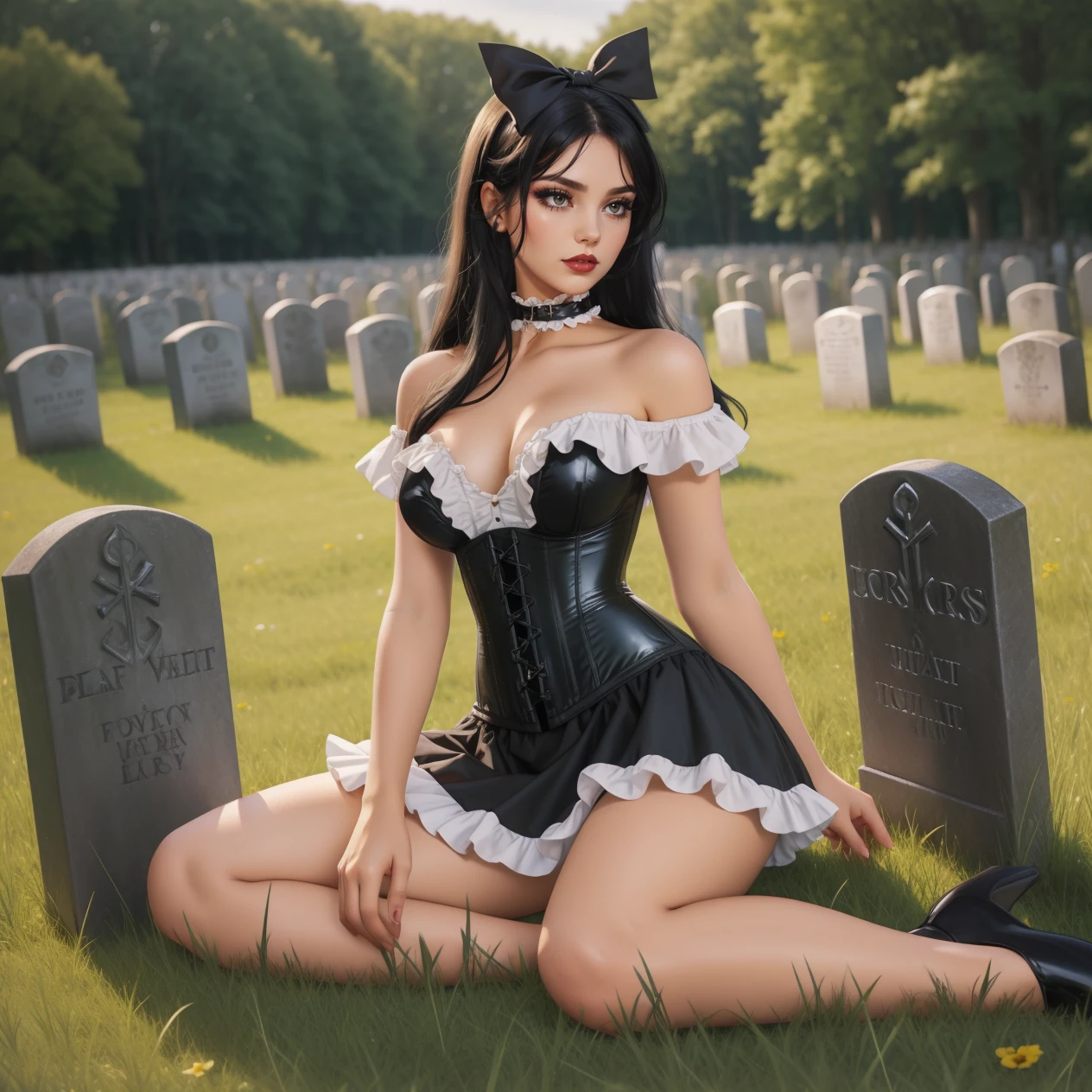 For dress: hud_crst_prncss_drss, bare shoulders, blue corset, off shoulder, blue dress, short dress, frills, hairbow, choker, lipstick