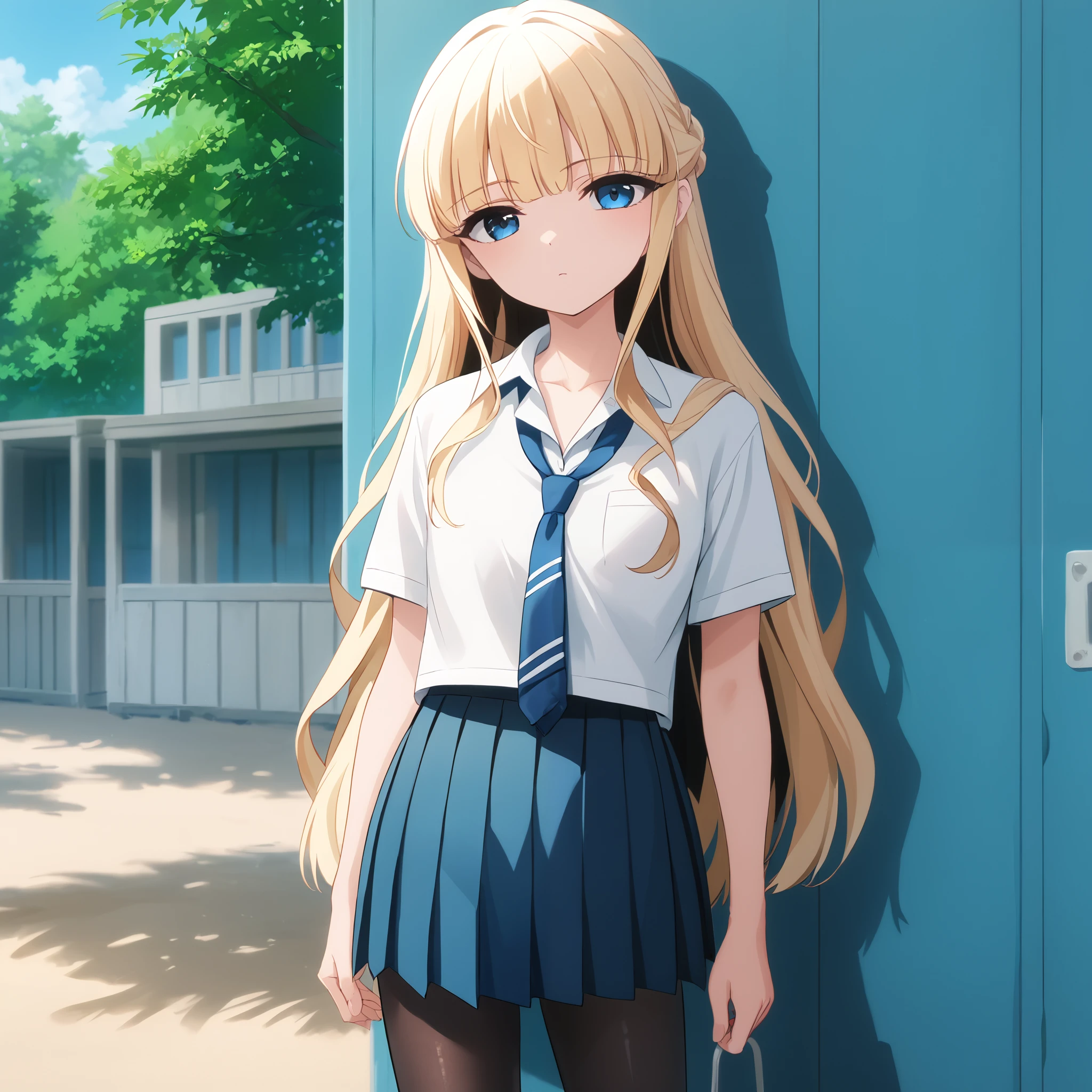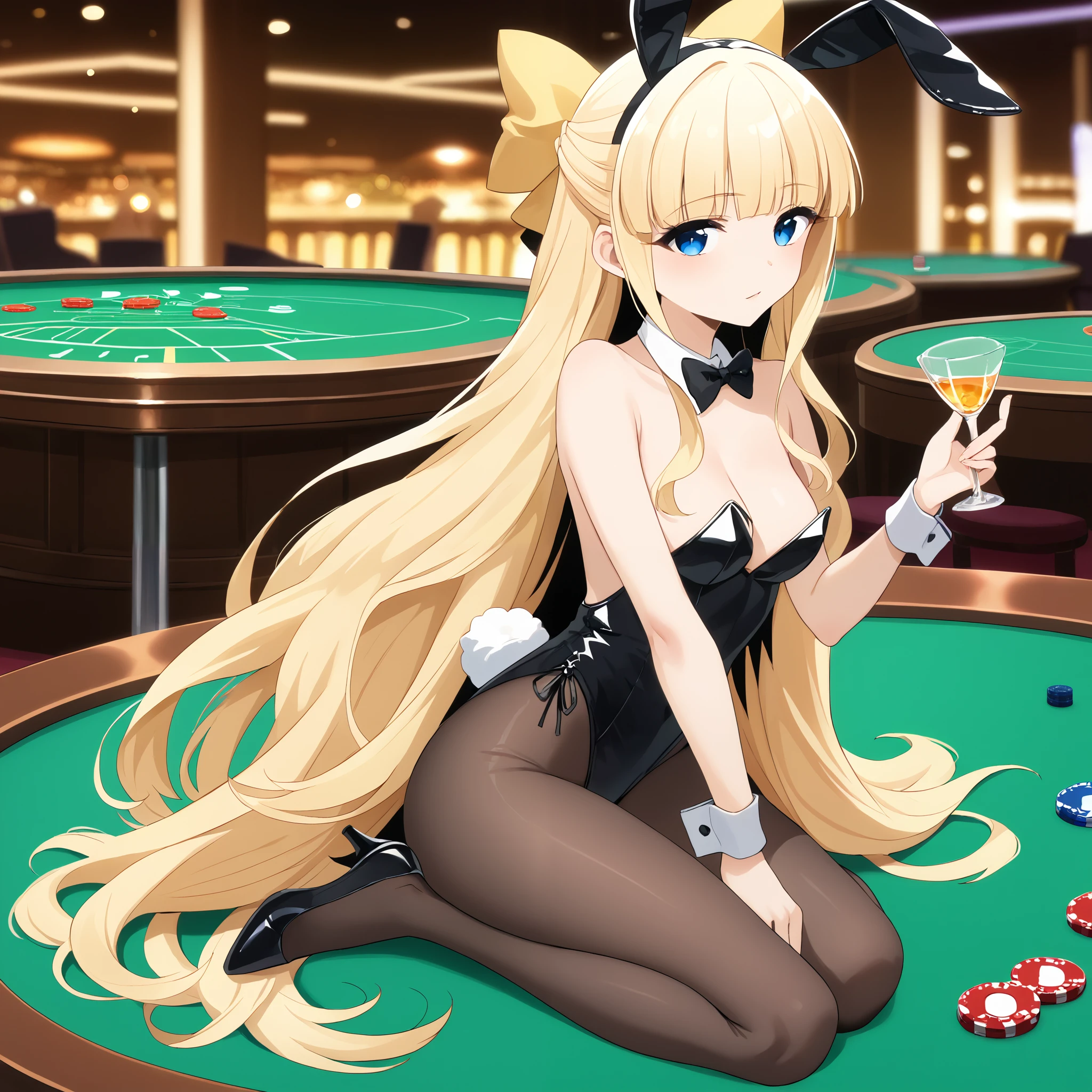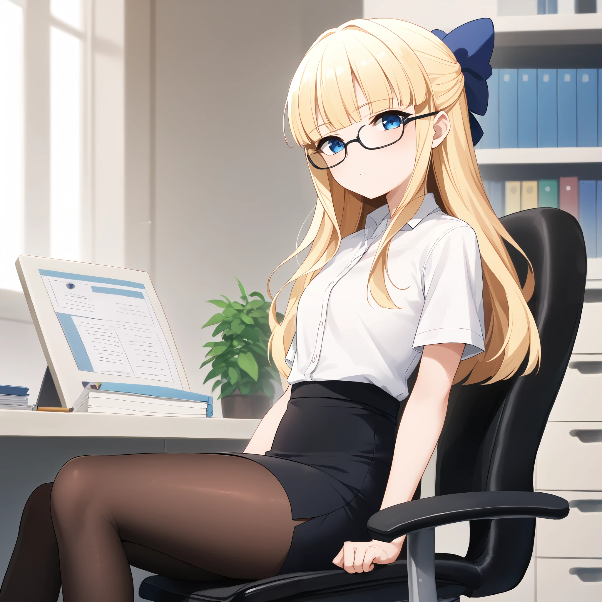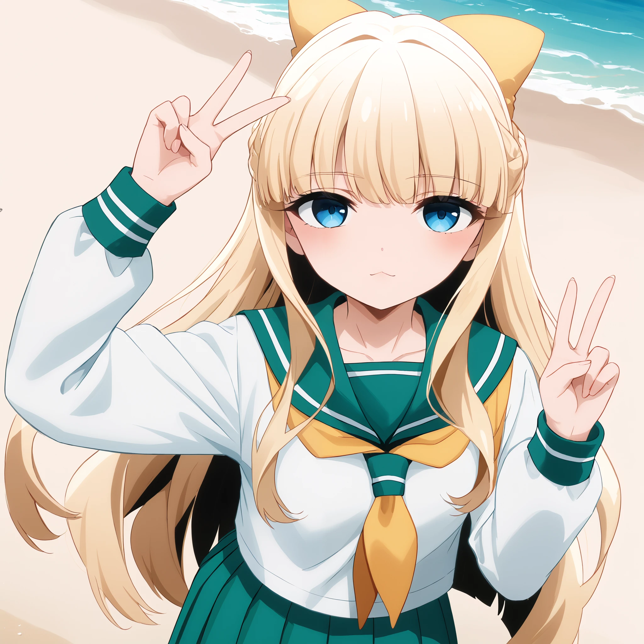 Magical Girl Uniform : tenkawa kaoruko, blonde hair, blue eyes, long hair, magical girl, hair bow, yellow bow, yellow dress, yellow bowtie, puffy short sleeves, white sleeves, elbow gloves, yellow gloves, yellow skirt, high-waist skirt, frilled skirt, thigh boots, yellow footwear,Description