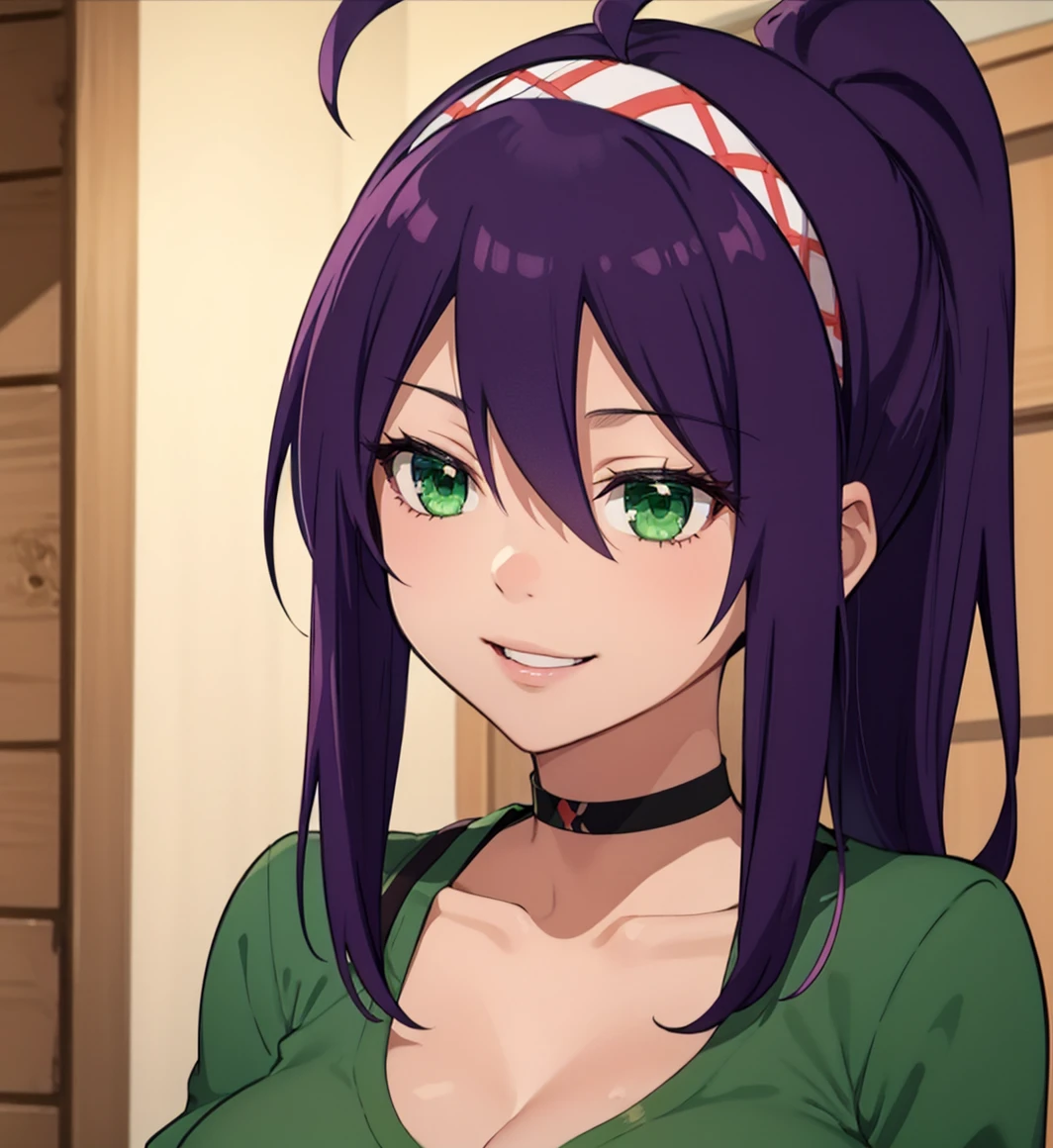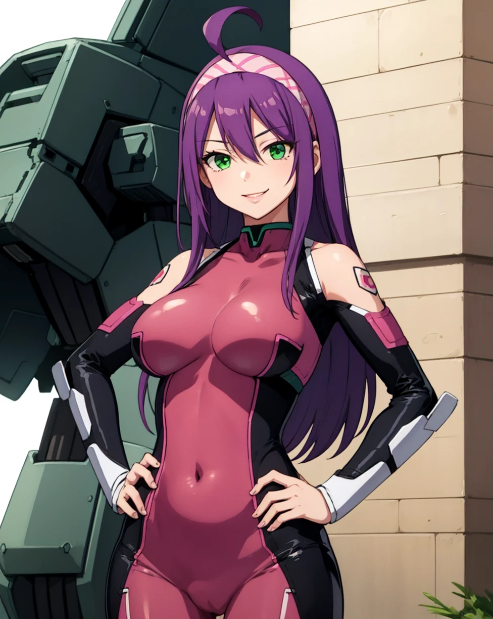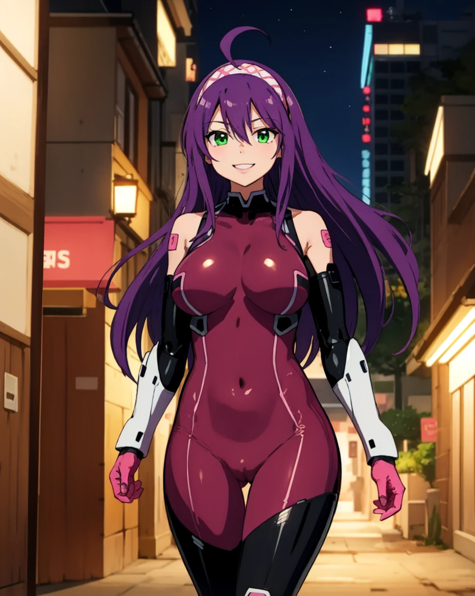 ezmaria,purple hair, green eyes, long hair, hairband,ahoge,,maturefemale,solo