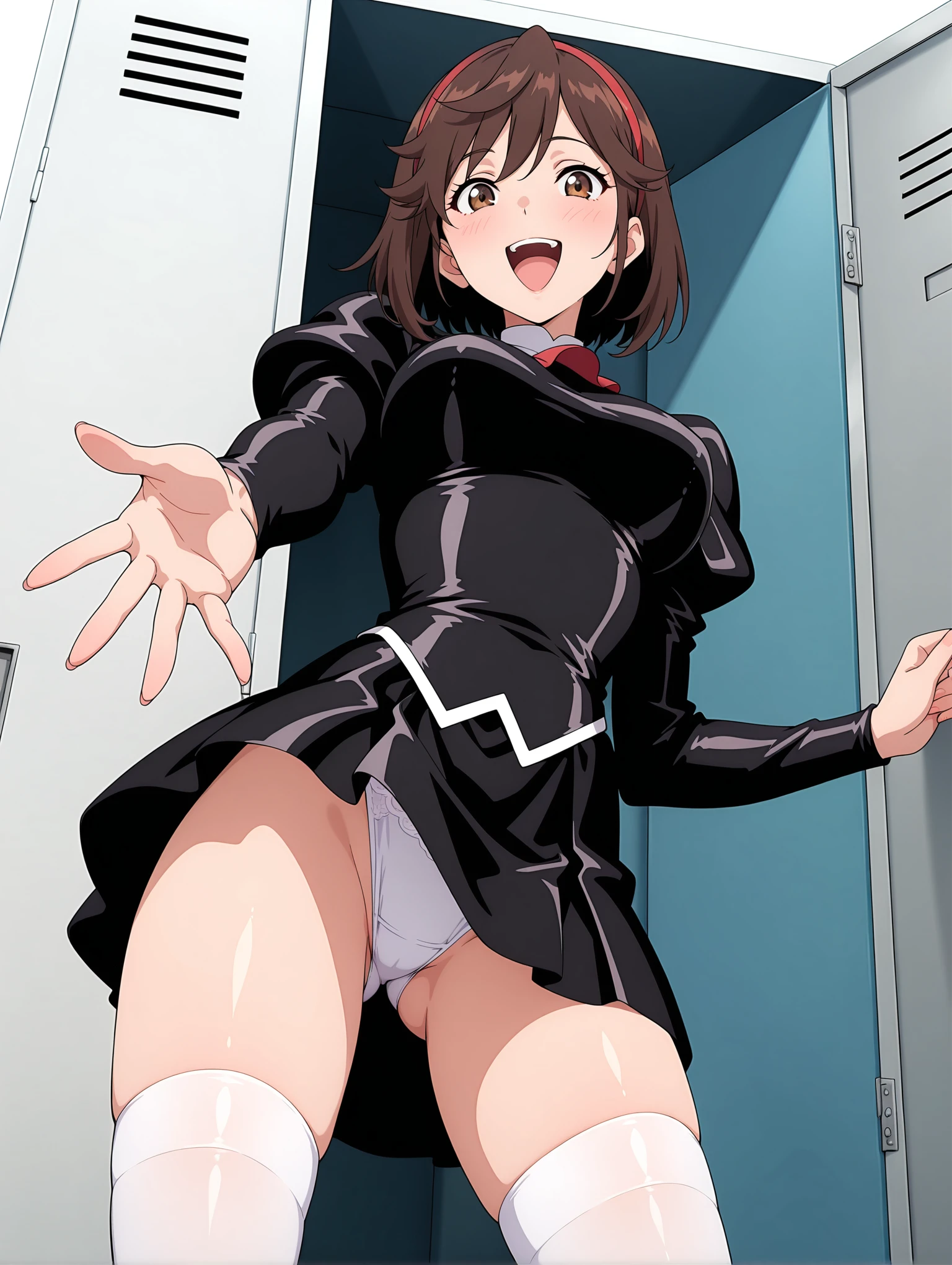 トリガーワード・l_d_d,red hairband,short hair,brown hair,brown eyes,