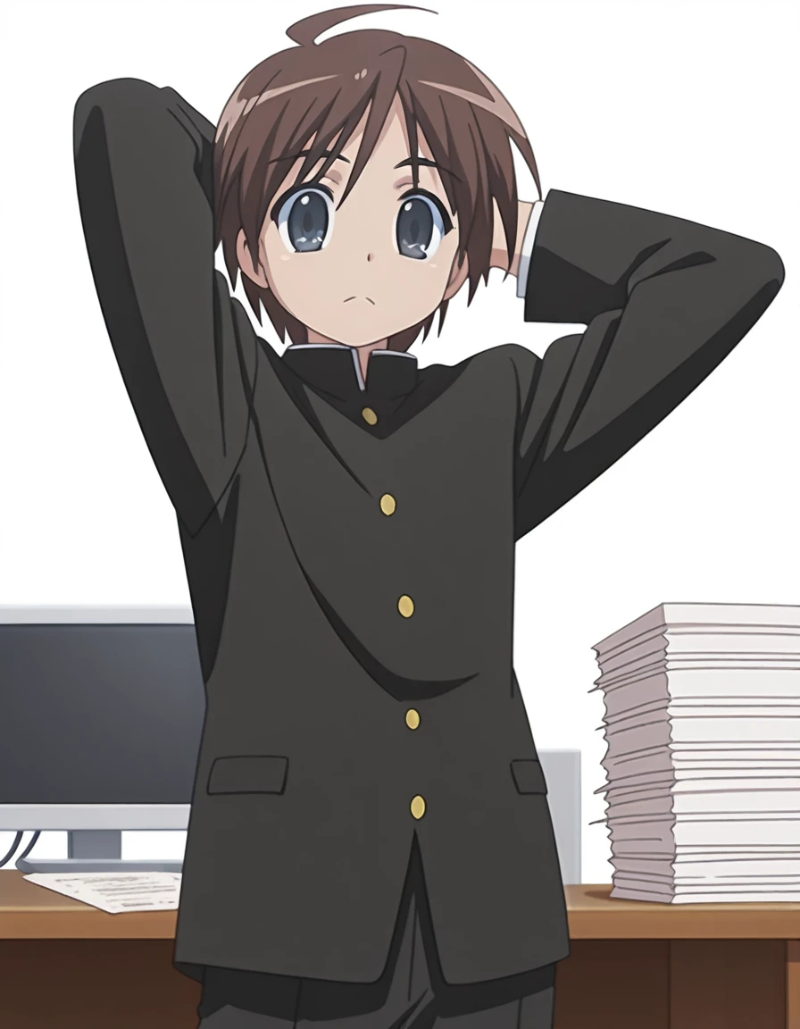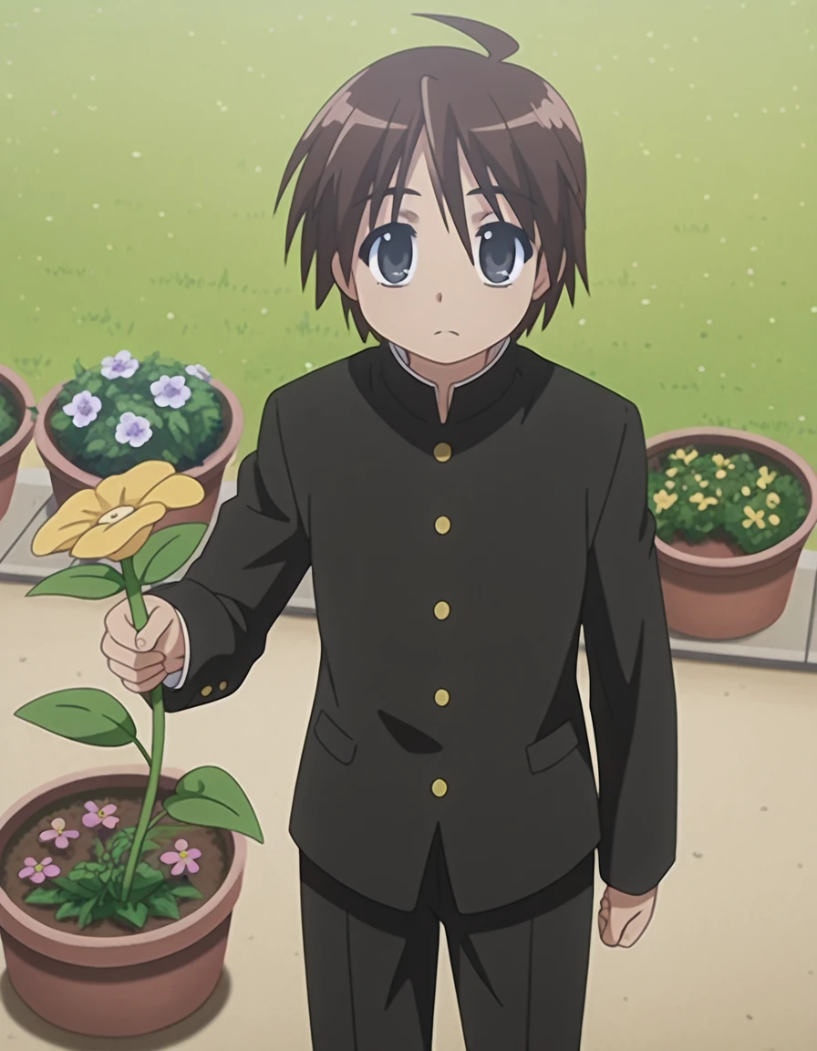 yuuji sakai, brown hair, ahoge, male focus, black eyes, anime screencap