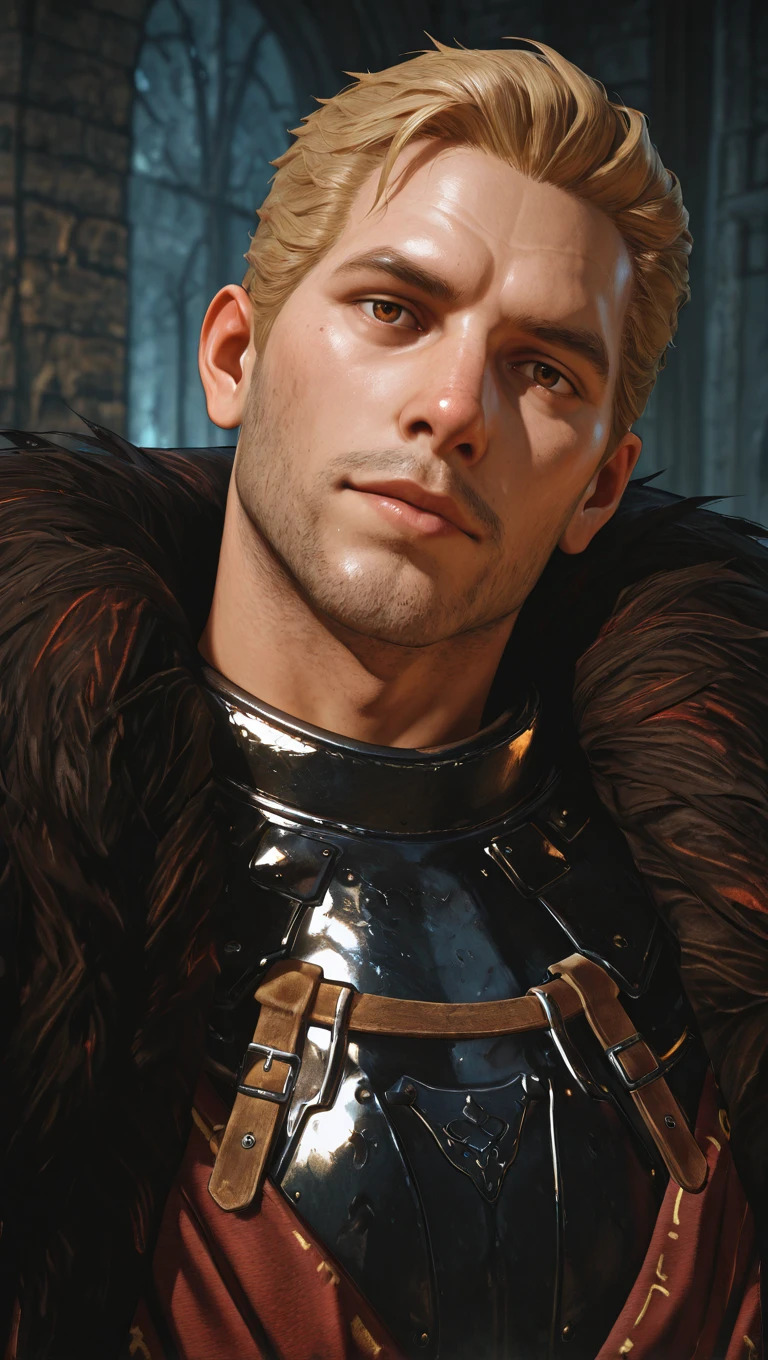 fur-trimmed cloak, pauldrons, breastplate, shirt, gauntlets, gloves, belt, black pants, bootsThe settings I used for my generation testing were 3-5 CFG, 20 steps, DPM++ 2M SDE - Karras on Forge with an adetailer (specifically face_yolov8s).