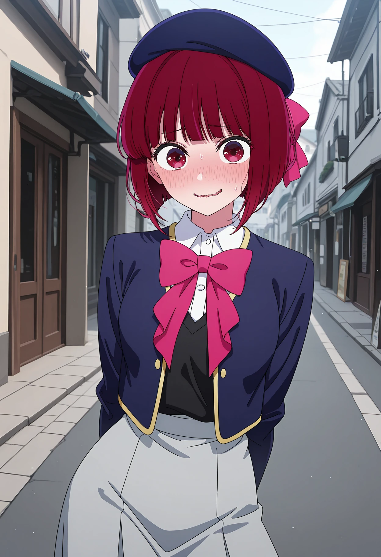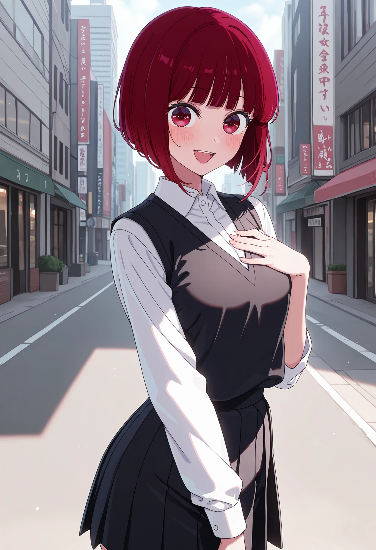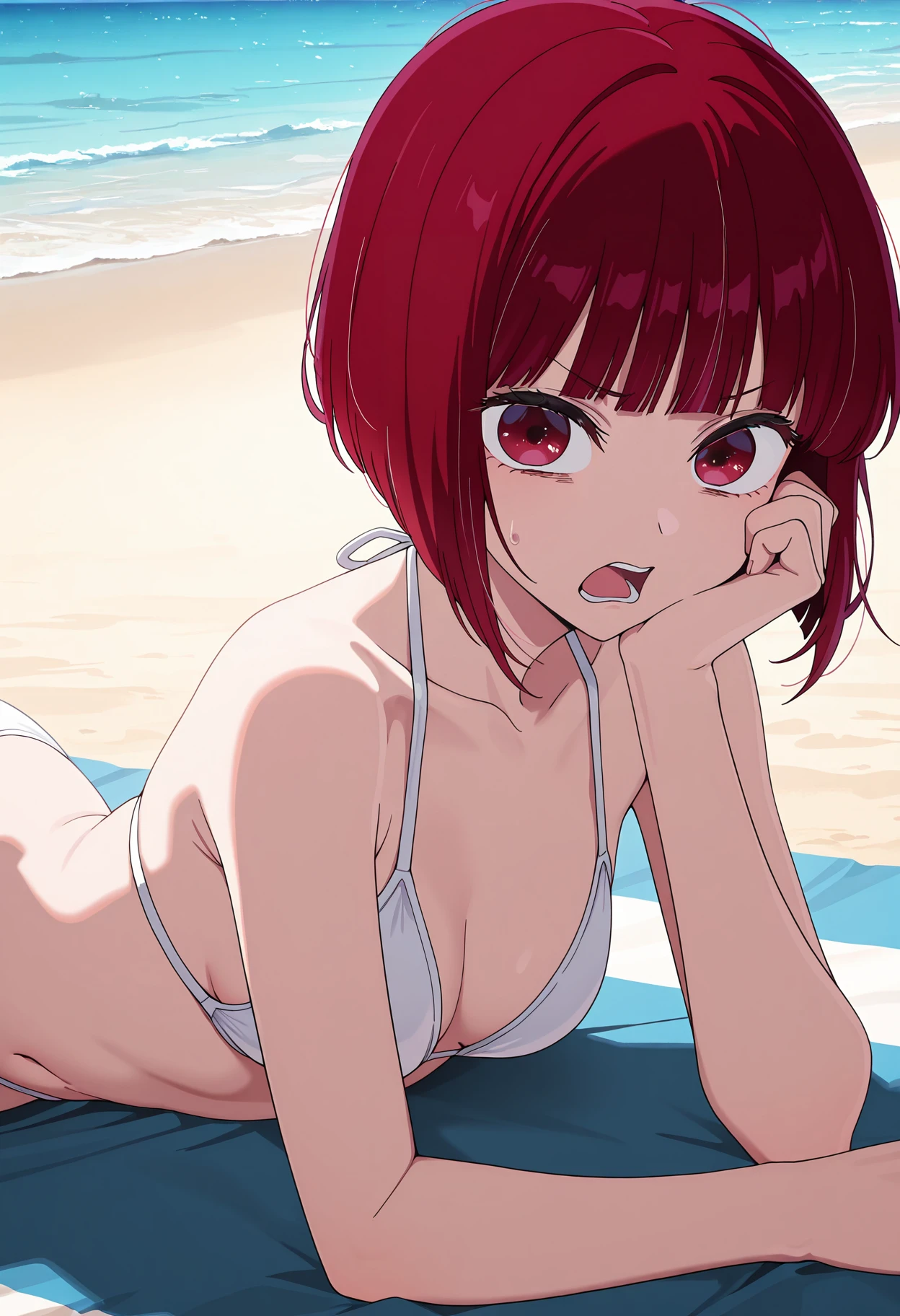 KJOkana, red hair, red eyes, short hair, blunt bangs,
