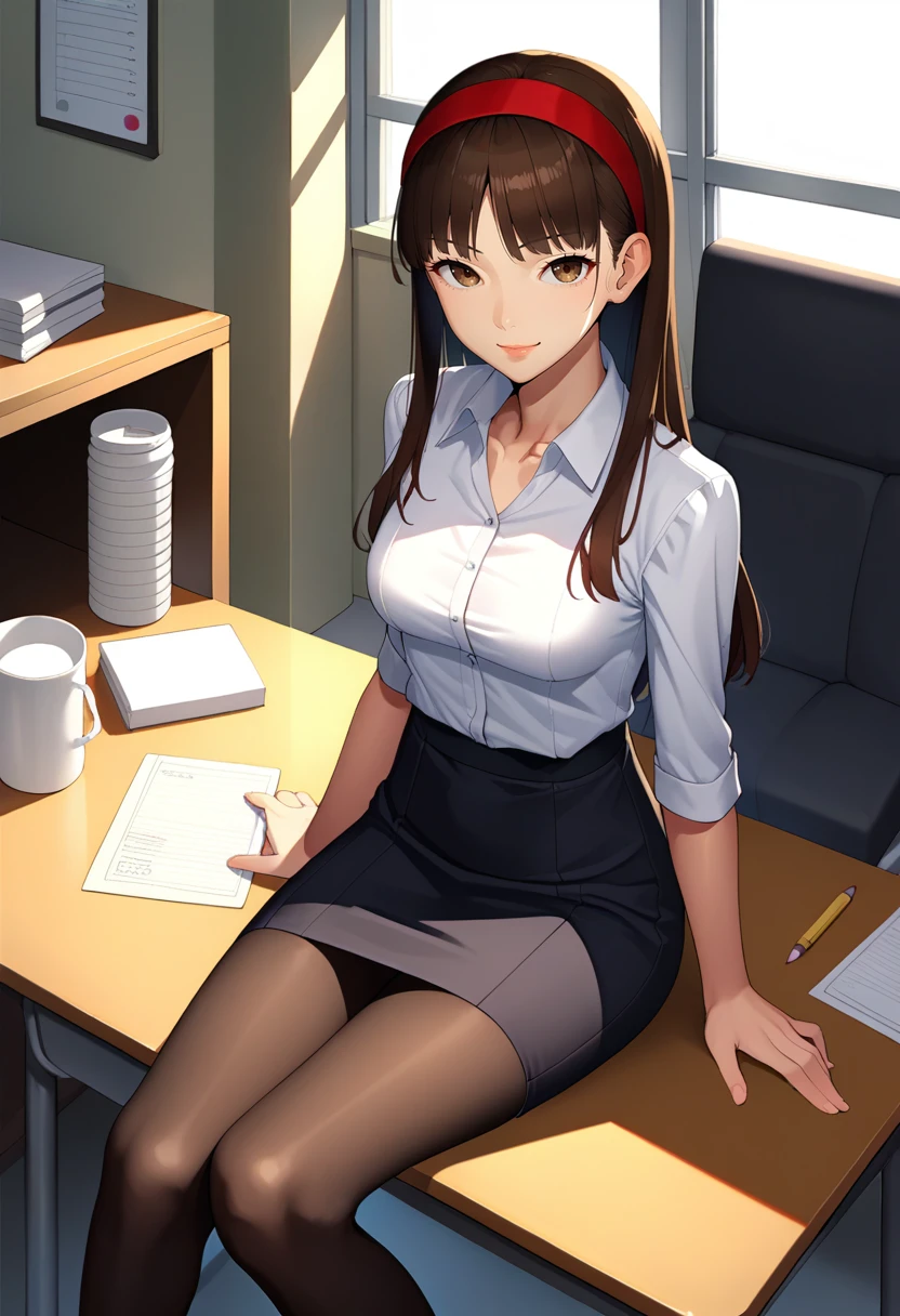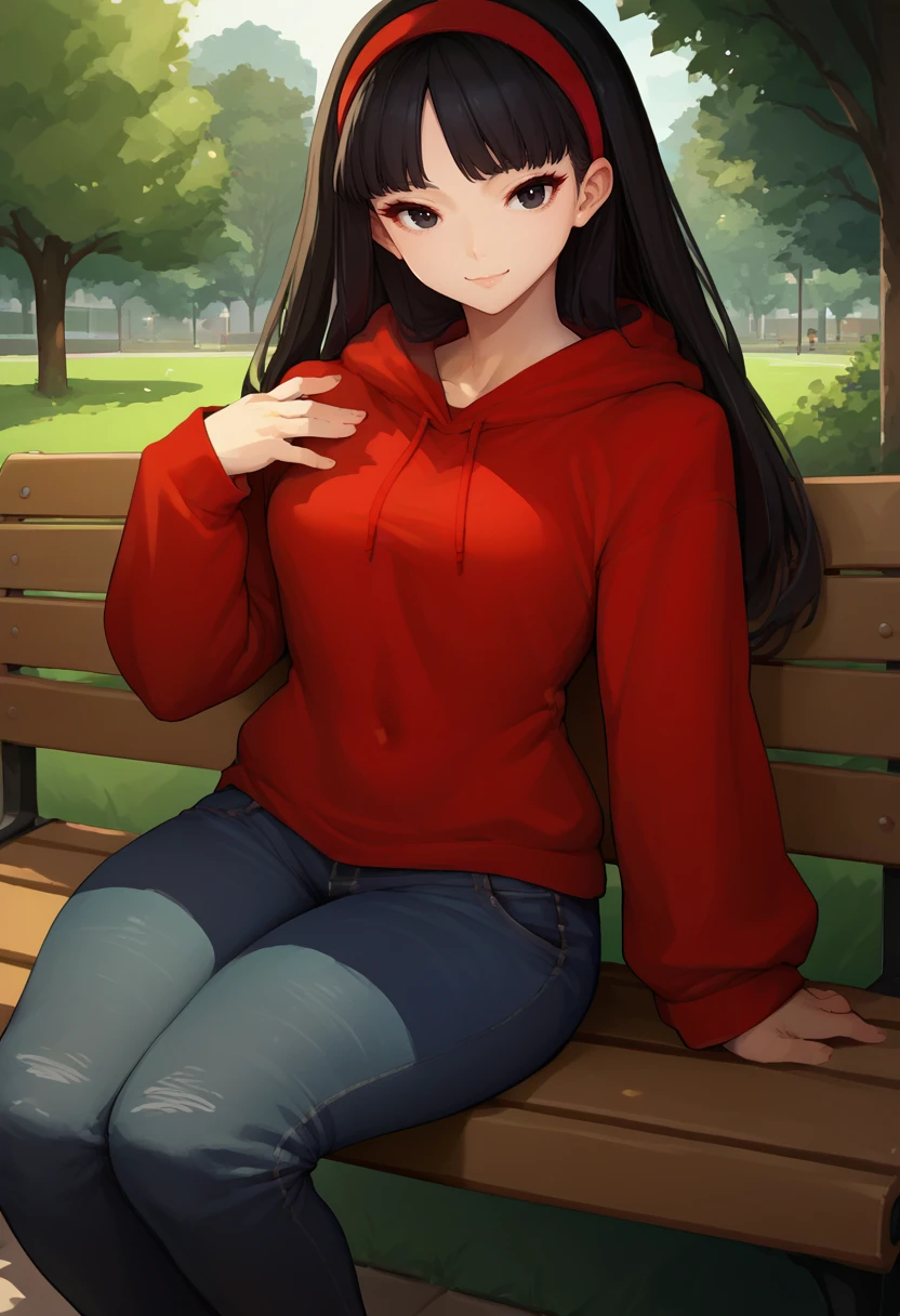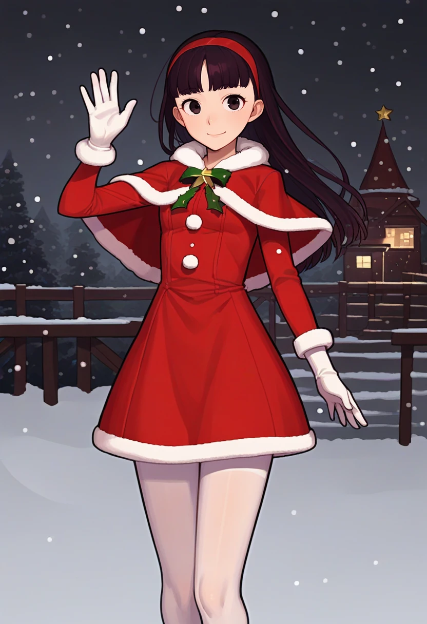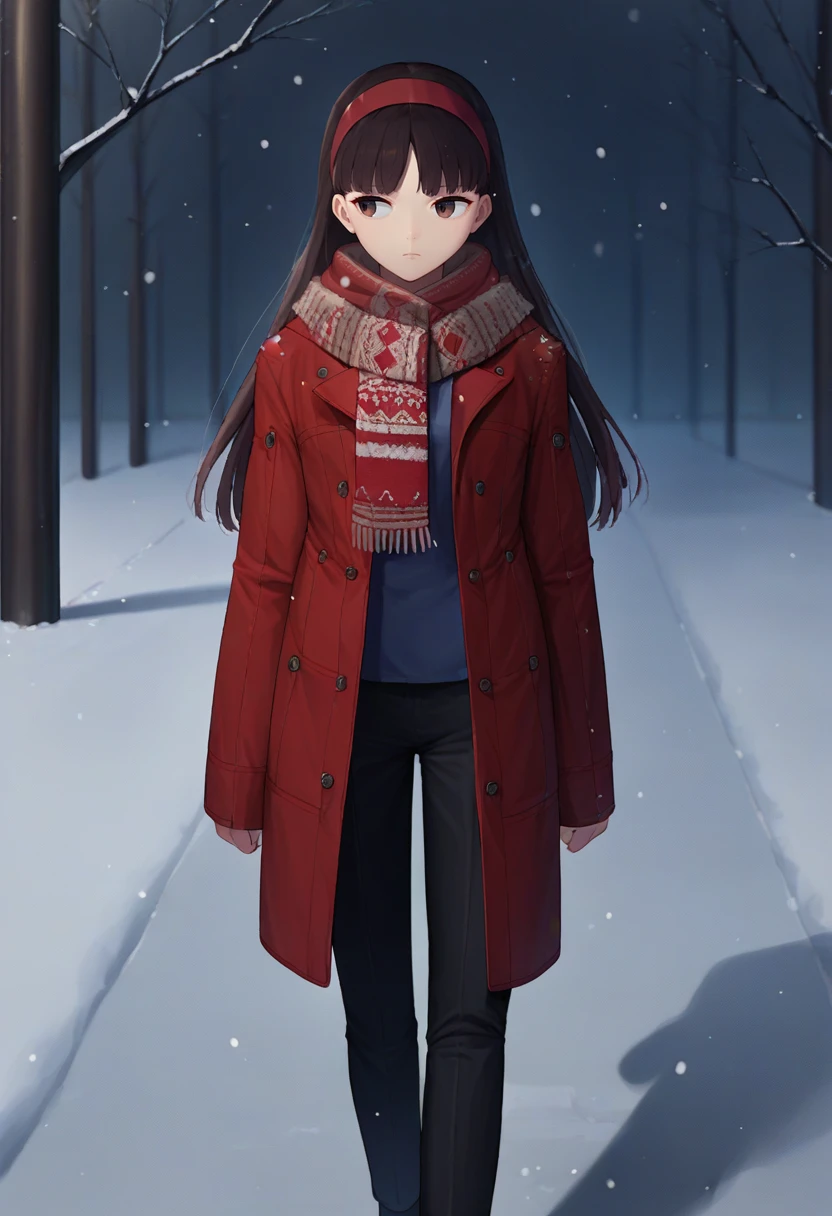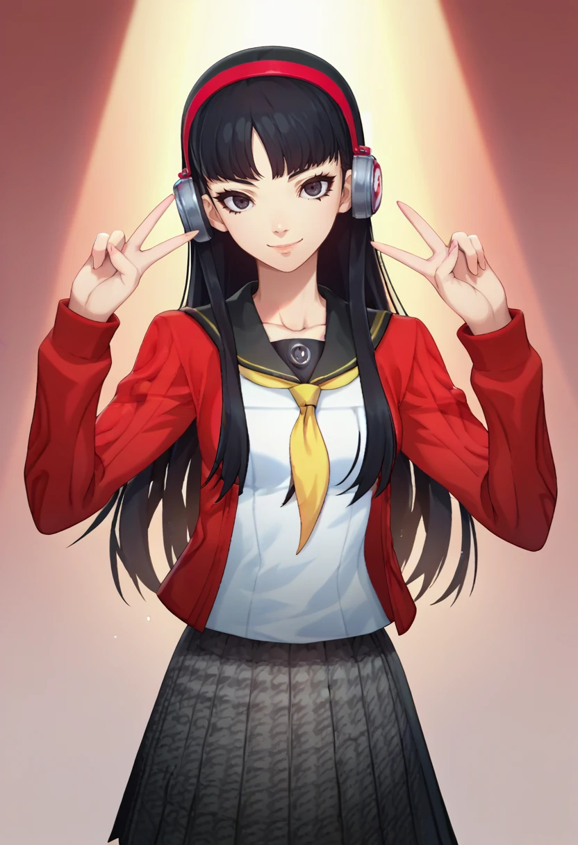 Yasogami School Uniform: yukikodef, red hairband, school uniform, red sweater, red cardigan, black sailor collar, yellow neckerchief, long sleeves, black skirt, black pantyhose