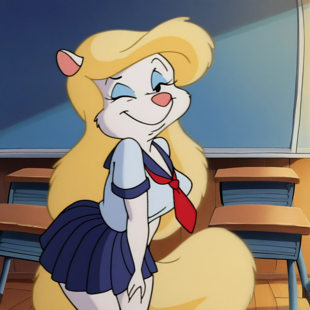 Quite the headache. For this one, she has several outfits from the show, but you can give her others via prompt.