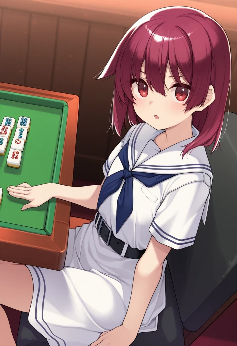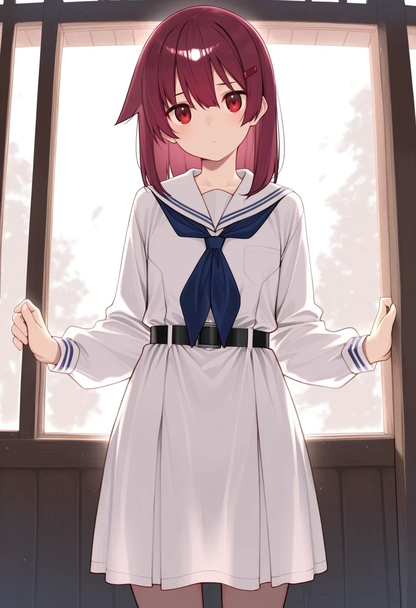 white sailor collar,white dress,blue neckerchief,black belt,short sleeves,
