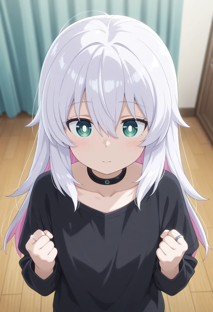 Trigger Words: alma (alma-chan wa kazoku ni naritai), long hair, white hair, pink hair, colored inner hair, two-tone hair, multicolored hair, green eyes, bright pupils, white pupils