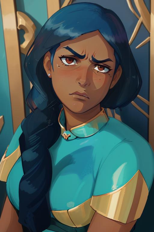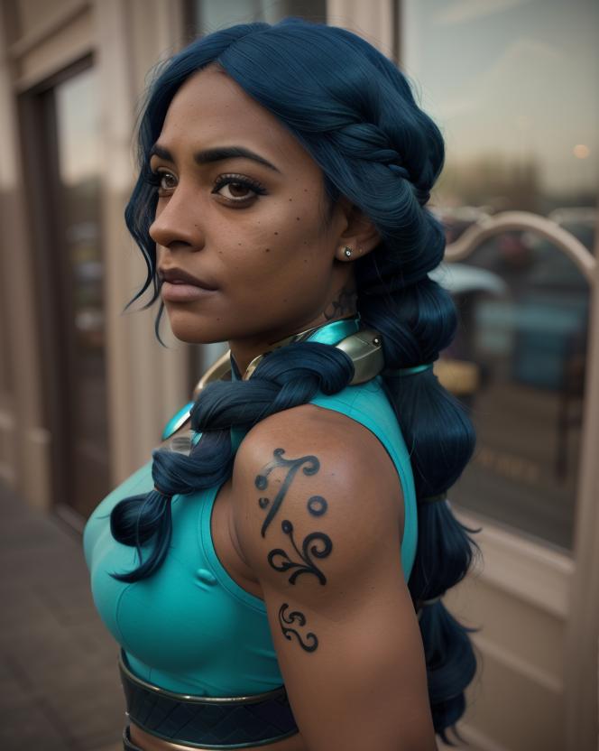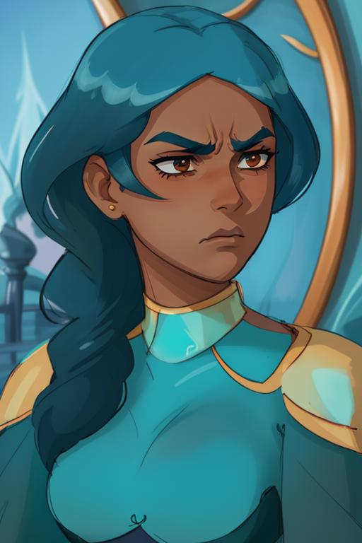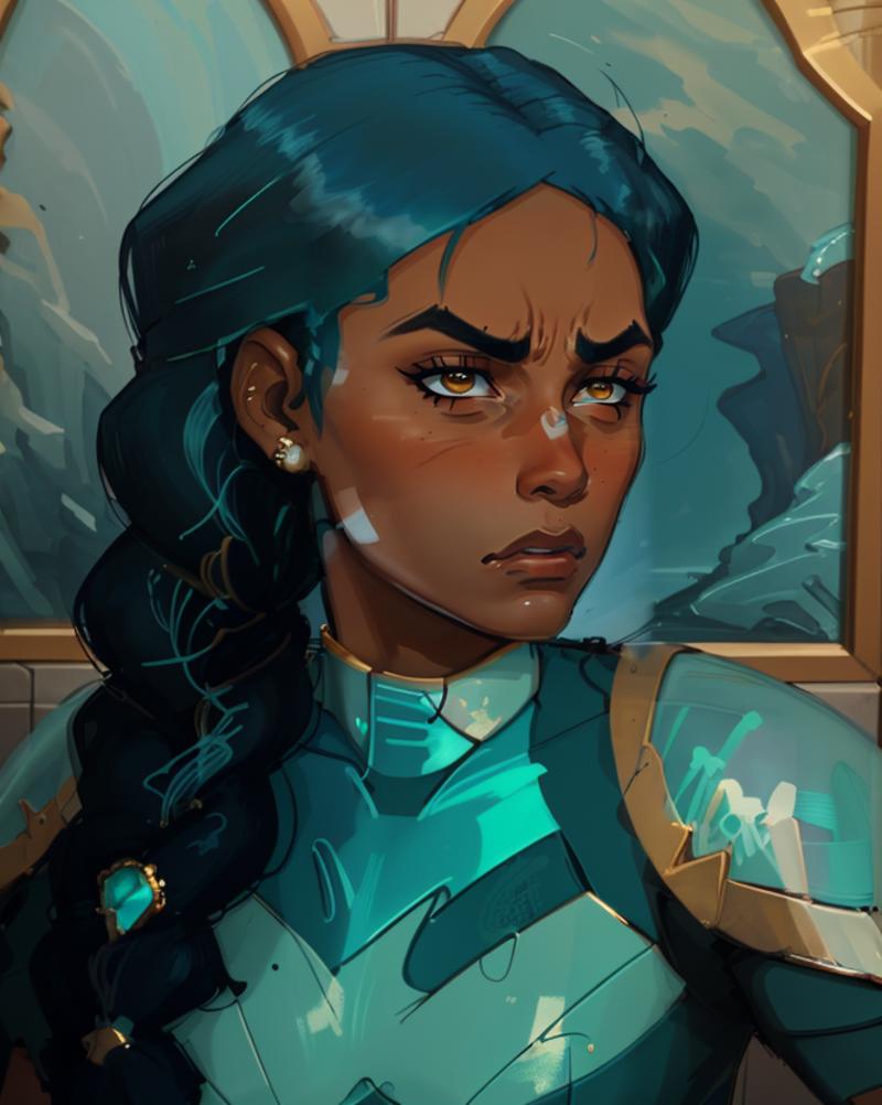 Simple prompt: <lora:mermistav118:0.7>(mermista, single braid, dark-skinned female)