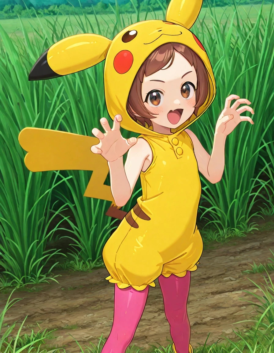 Clothes: cosplay, pikachu (cosplay), tail, bare legs, yellow footwear