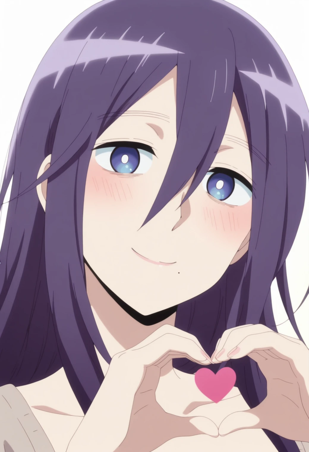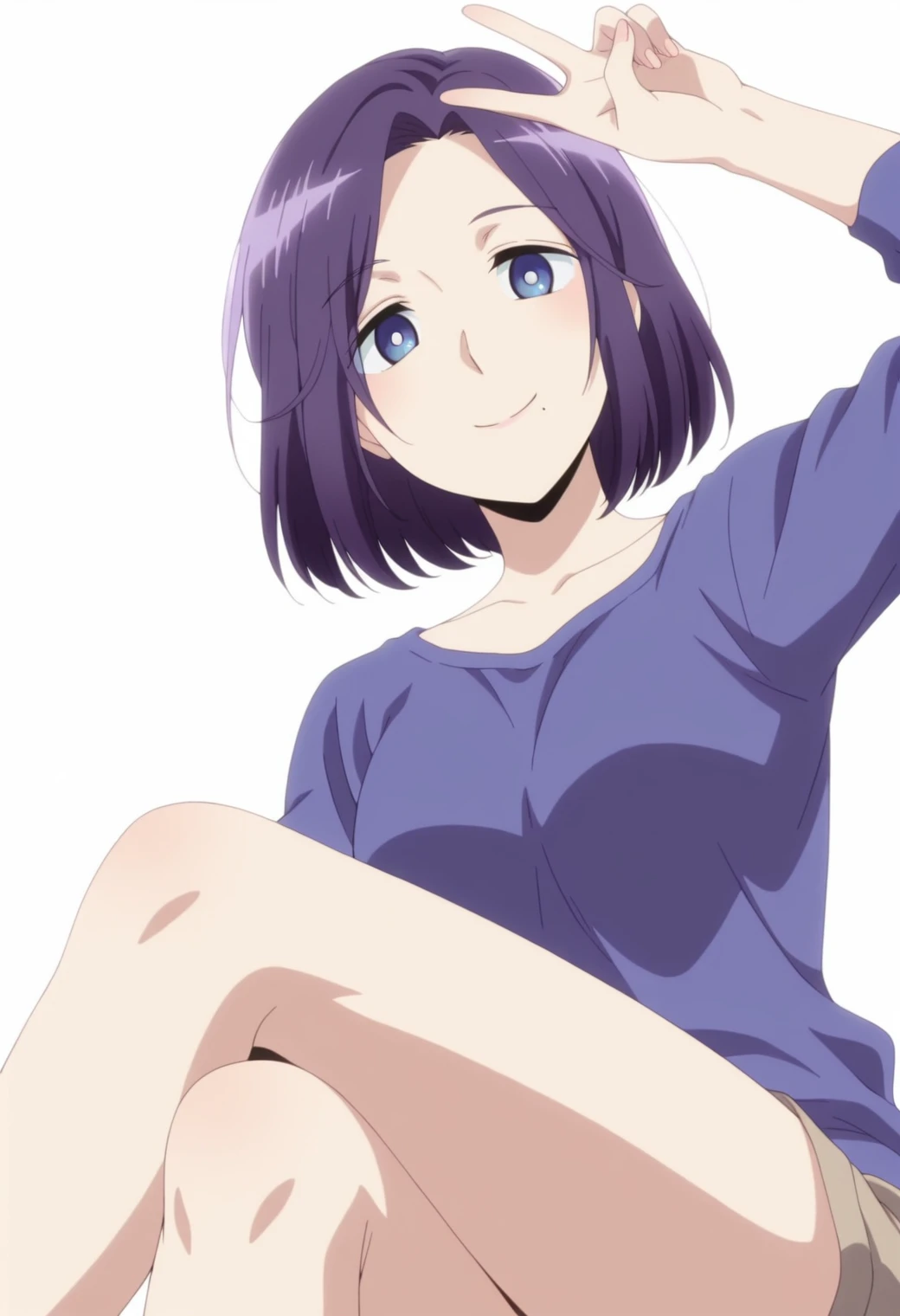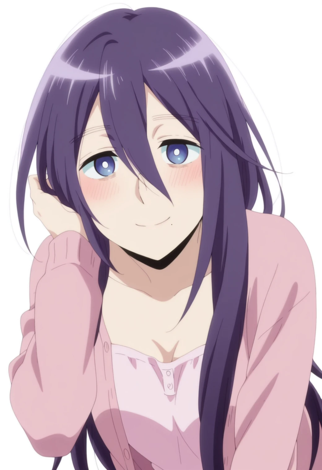 morioka moriko, blue eyes, purple hair, mole under mouth,