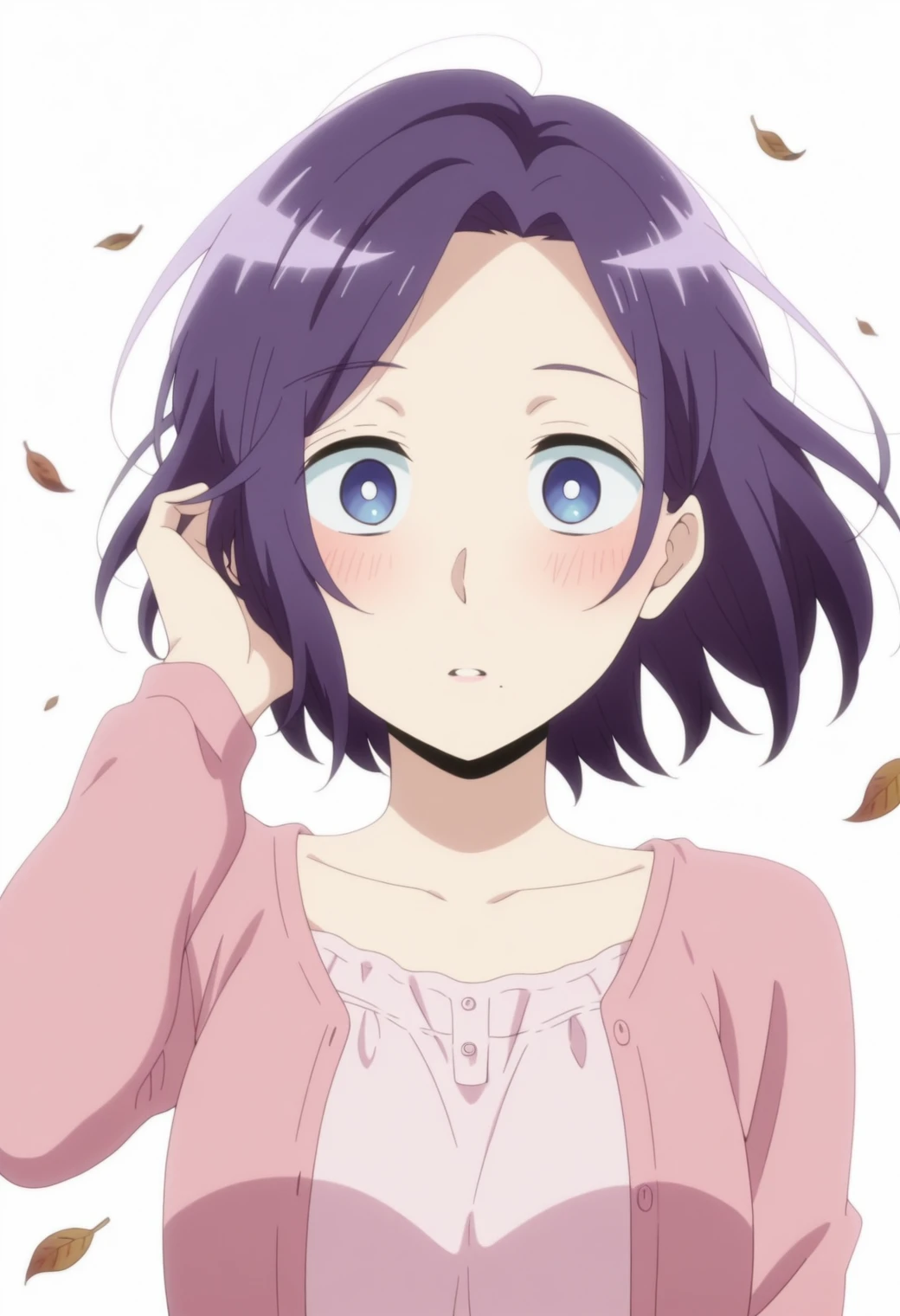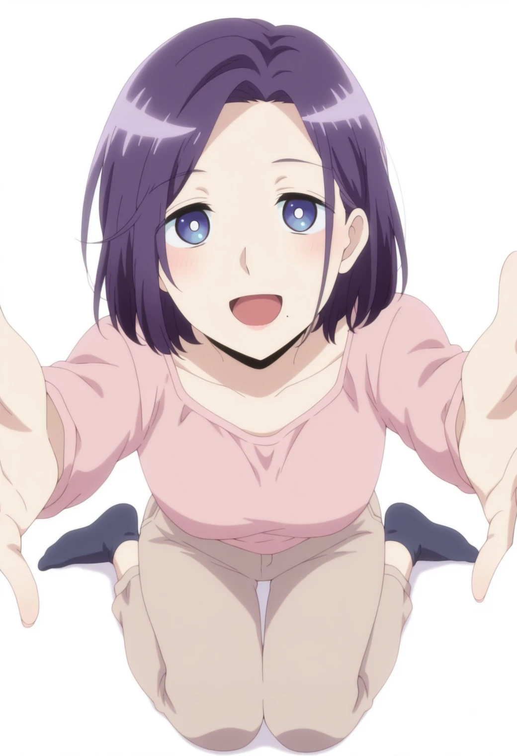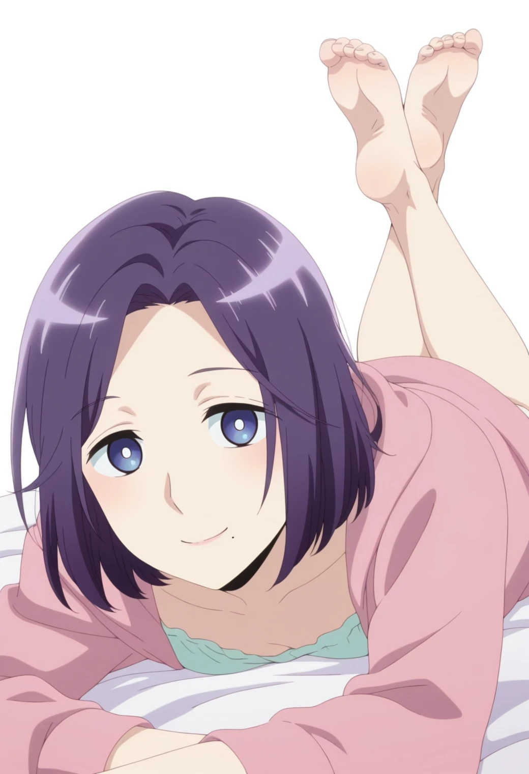 morioka moriko, blue eyes, purple hair, mole under mouth,