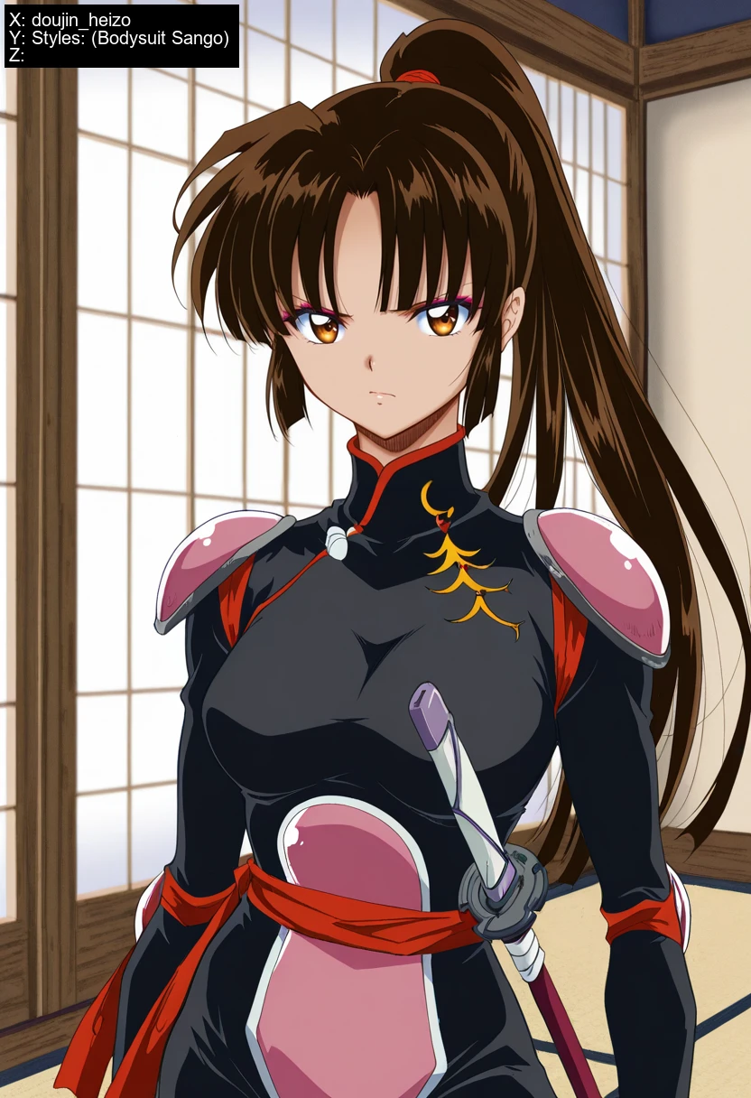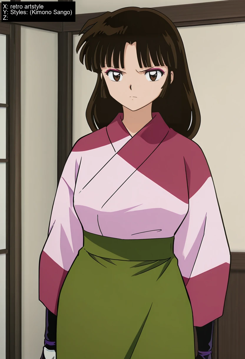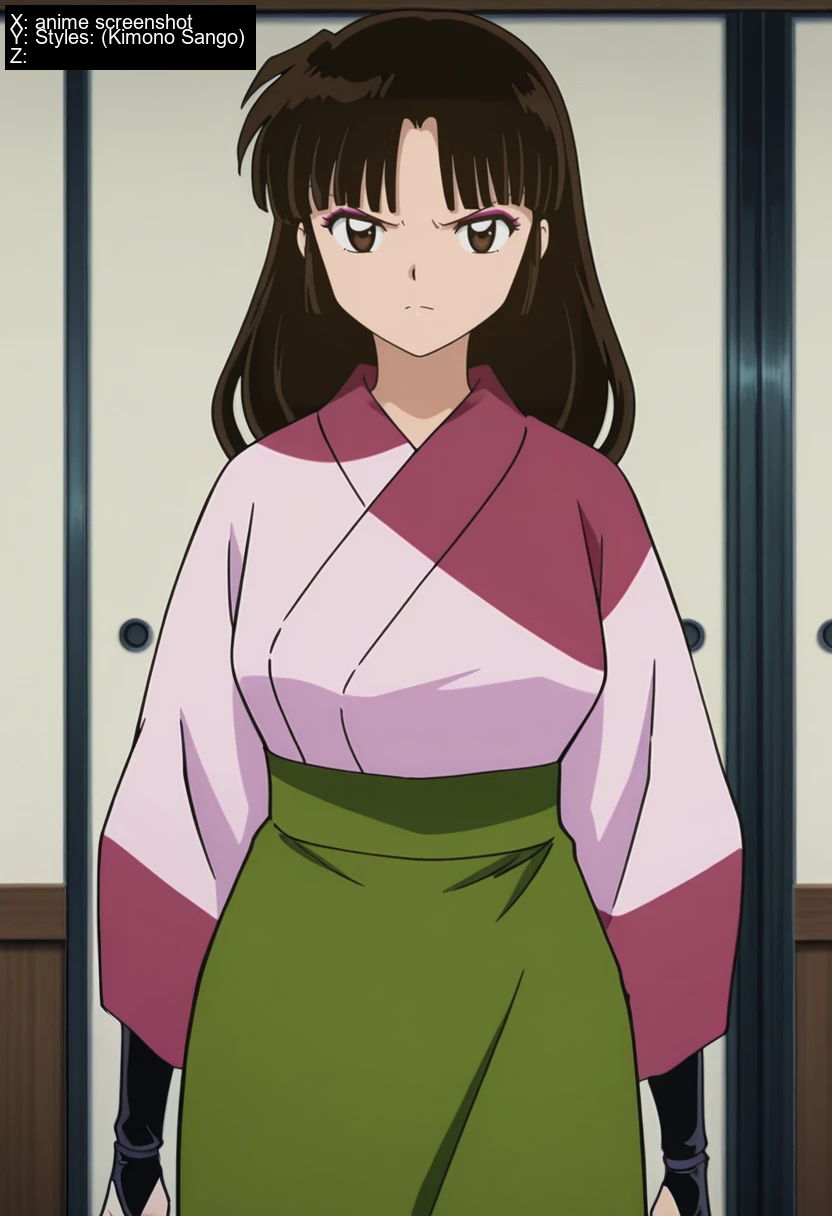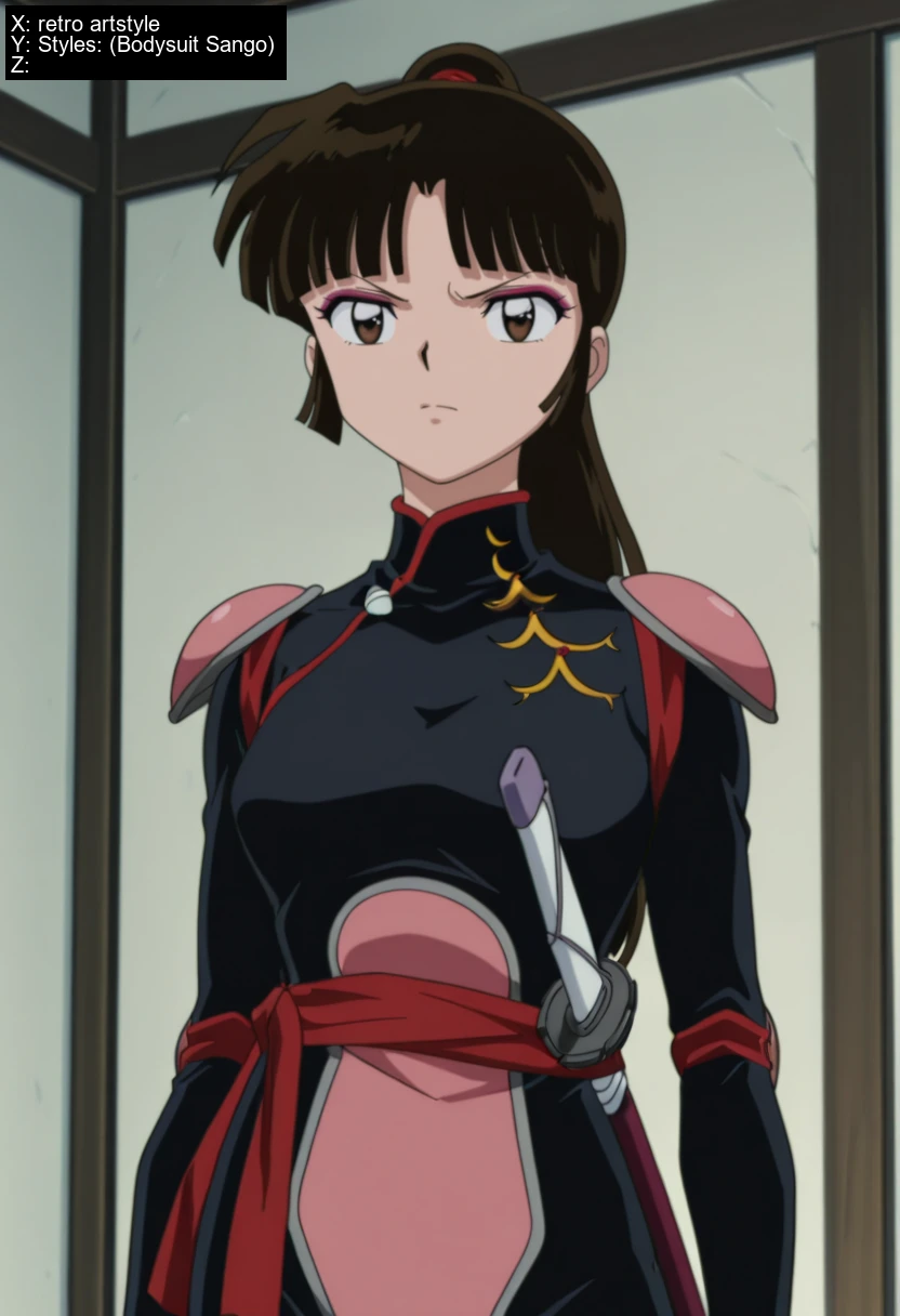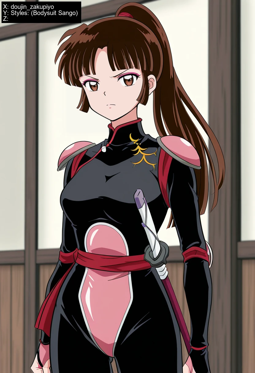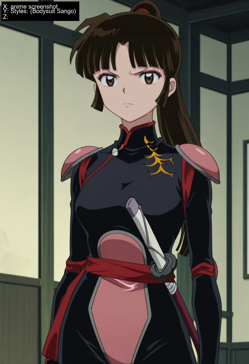 This LoRA can produce several styles of Sango from Inuyasha, depending on trigger use - here is what you should know, split into two sections: Trigger Words and Sample Prompts.