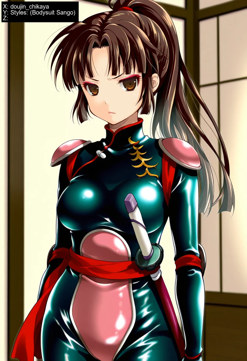 ◽️ If you're trying to aim for the vanilla style, don't use any doujin trigger and use anime coloring, retro artstyle or something. The original 280 images of Sango were tagged with those, oops? Put doujin triggers in the negatives as a backup.